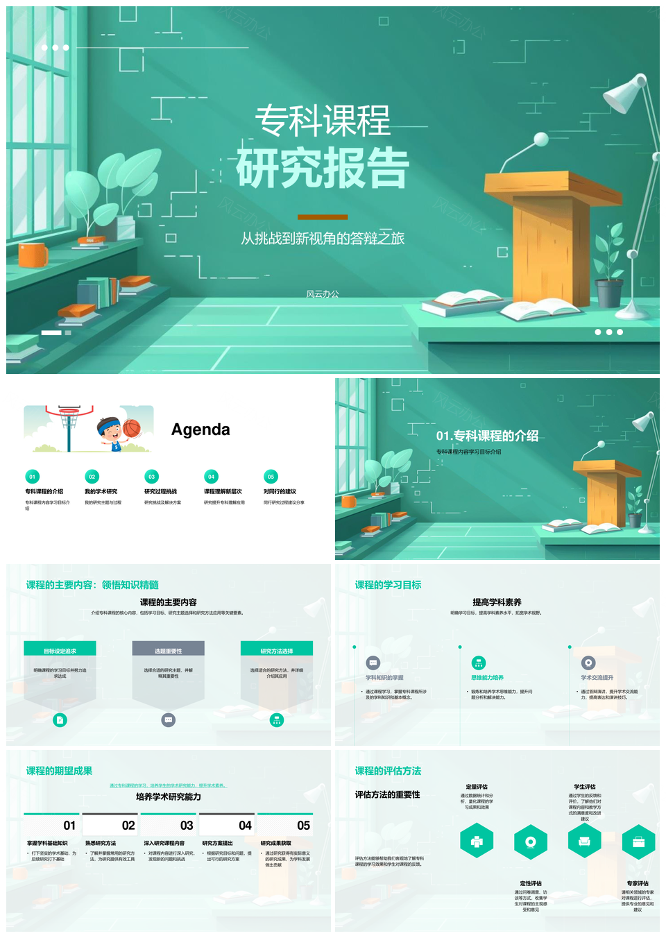 专科课程学术答辩研究报告目标主题方法结果挑战PPT模板推荐