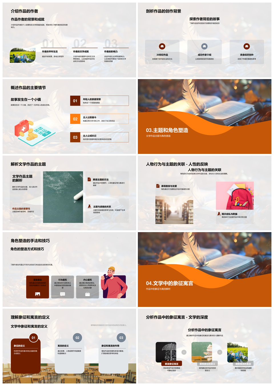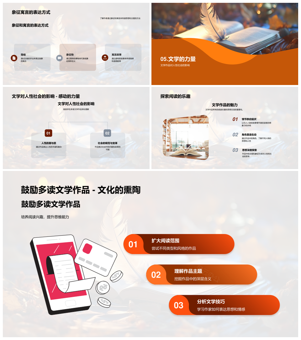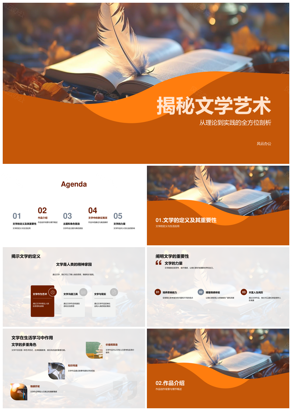 风云办公提供的揭秘文学本质价值与作品创作分析PPT模板,下载格式为pptx,一共23页,作品中文字及图均可以修改和编辑,图片更改请在作品中右键图片并更换,文字修改请直接点击文字进行修改。