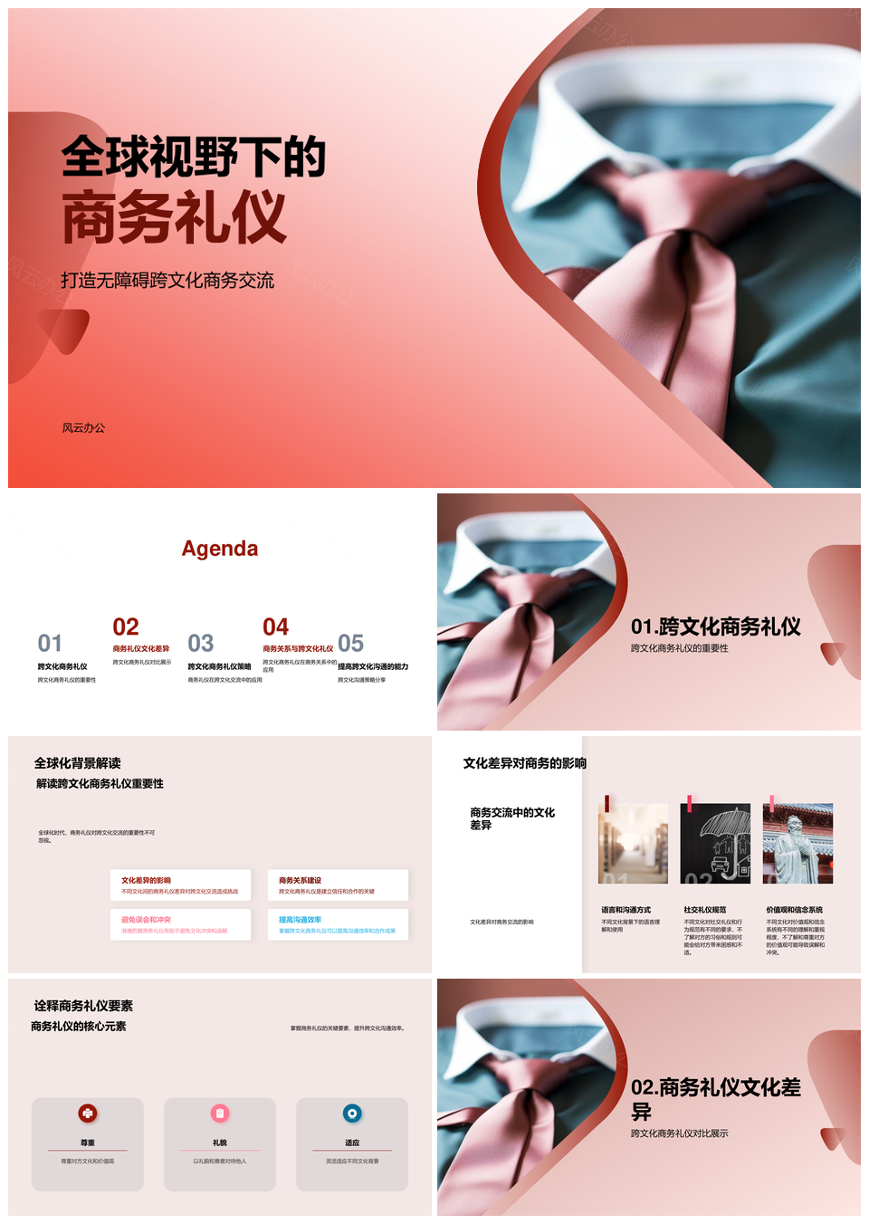 风云办公提供的全球化商务礼仪文化差异沟通策略PPT模板,下载格式为pptx,一共23页,作品中文字及图均可以修改和编辑,图片更改请在作品中右键图片并更换,文字修改请直接点击文字进行修改。
