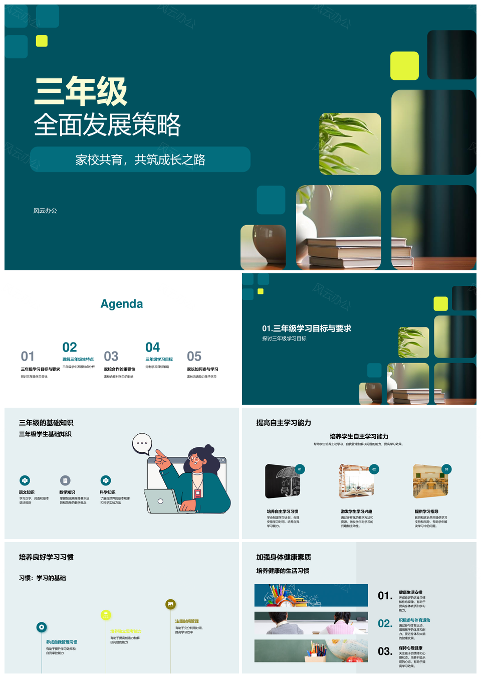 风云办公提供的三年级家校共育促自主健康学习发展PPT模板,下载格式为pptx,一共25页,作品中文字及图均可以修改和编辑,图片更改请在作品中右键图片并更换,文字修改请直接点击文字进行修改。