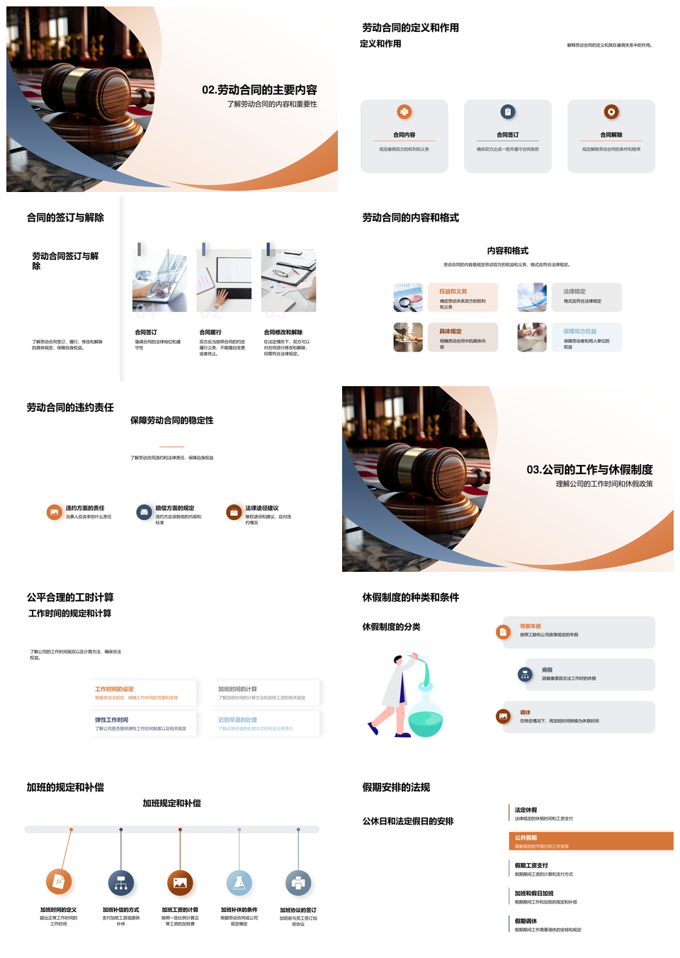 这是一张劳动法权益保障劳动合同工时休假工资争议PPT模板,包含劳动法、权益保障、劳动合同、工时、休假、工资、争议等主题内容,也可用作劳动法权益保障劳动合同工时、权益保障劳动合同工时休假、劳动合同工时休假工资、工时休假工资争议、劳动法权益保障劳动合同、权益保障劳动合同工时、劳动合同工时休假、工时休假工资、休假工资争议、劳动法权益保障、权益保障劳动合同、劳动合同工时、工时休假、休假工资、工资争议等PPT场景使用。 风云办公提供的劳动法权益保障劳动合同工时休假工资争议PPT模板,下载格式为pptx,一共28页,作品中文字及图均可以修改和编辑,图片更改请在作品中右键图片并更换,文字修改请直接点击文字进行修改。