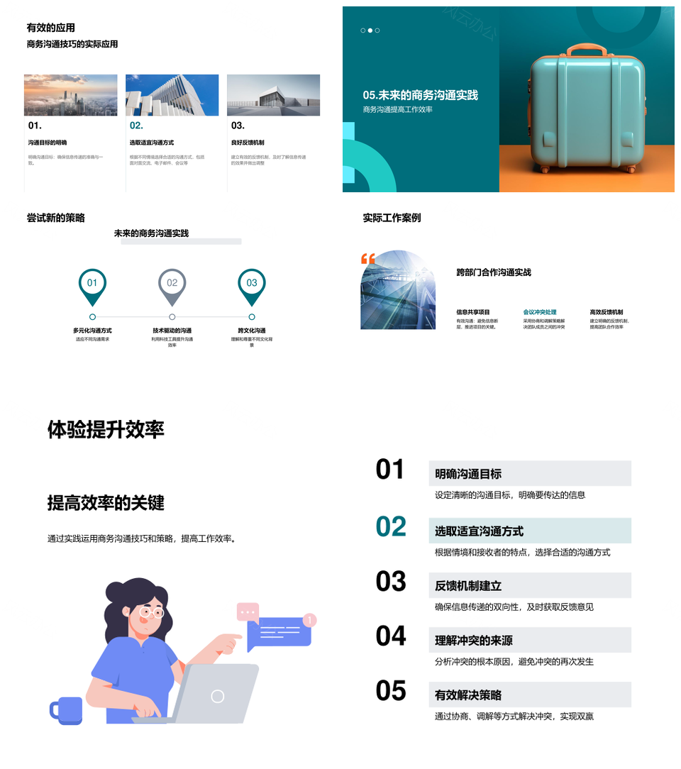 这是一张商务沟通团队协作效率培训师策略反馈冲突解决PPT模板,包含商务沟通、团队、协作、效率、培训师、策略、反馈、冲突、解决等主题内容,也可用作商务沟通团队协作效率培训师、团队协作效率培训师策略、效率培训师策略反馈、培训师策略反馈冲突解决、策略反馈冲突解决沟通、商务沟通团队协作效率、沟通团队协作效率培训师、团队协作效率培训师策略、协作效率培训师策略反馈、效率培训师策略反馈冲突、培训师策略反馈冲突解决、商务沟通团队协作、团队协作效率、冲突解决等PPT场景使用。 风云办公提供的商务沟通团队协作效率培训师策略反馈冲突解决PPT模板,下载格式为pptx,一共23页,作品中文字及图均可以修改和编辑,图片更改请在作品中右键图片并更换,文字修改请直接点击文字进行修改。