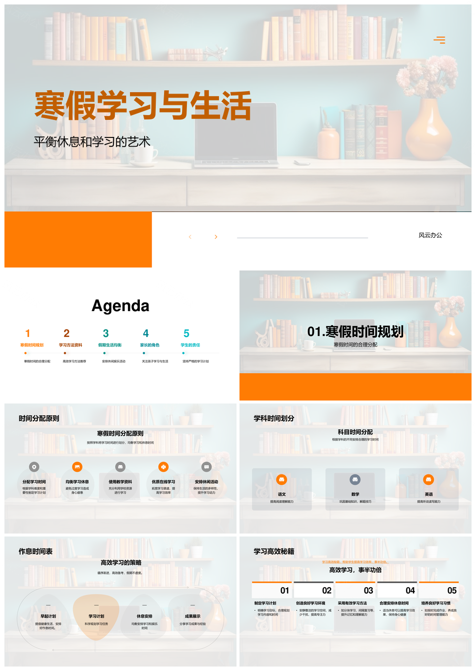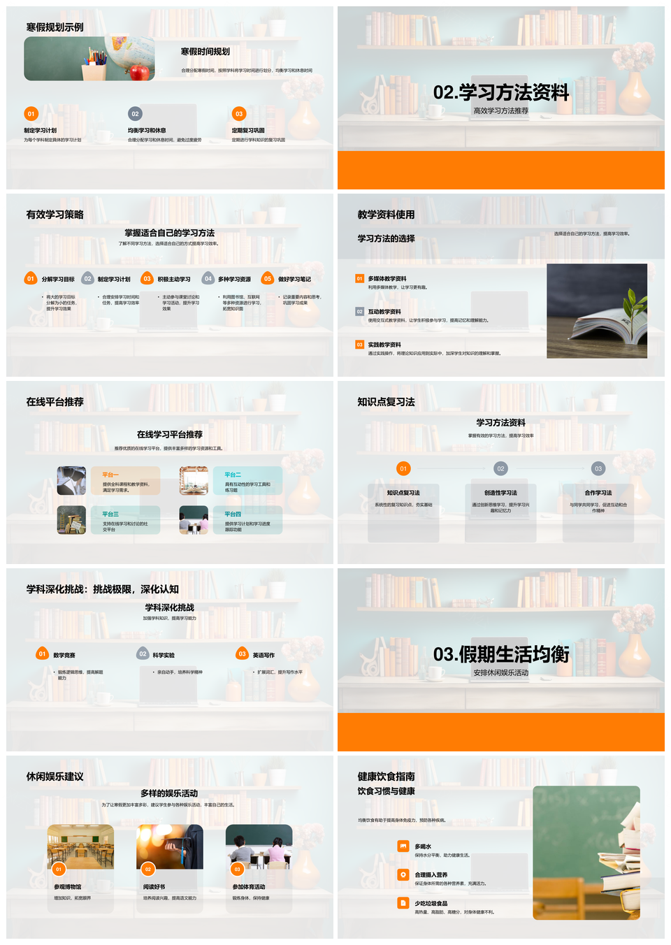 寒假学习生活平衡规划方法在线休闲健康饮食监督书籍PPT模板推荐