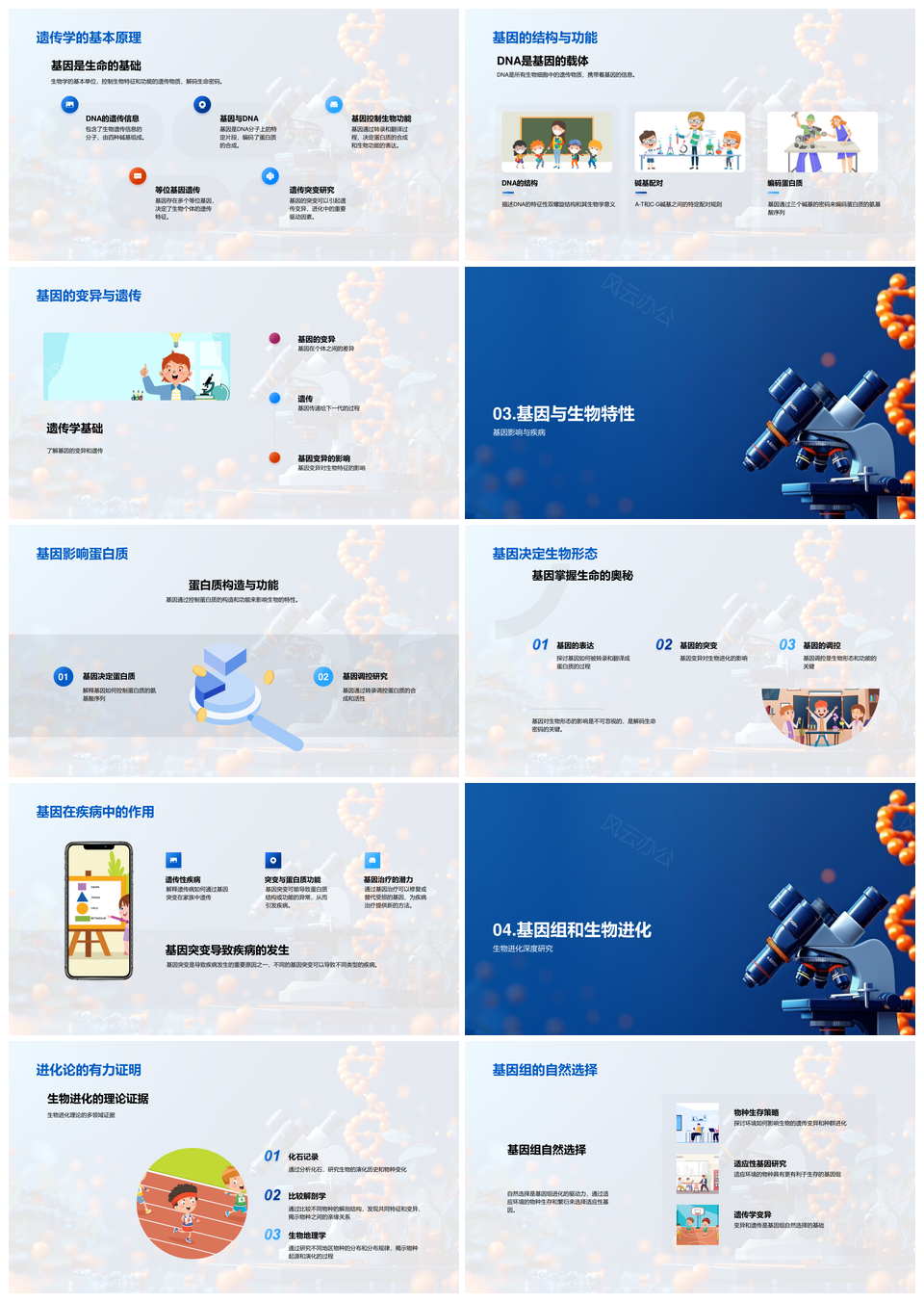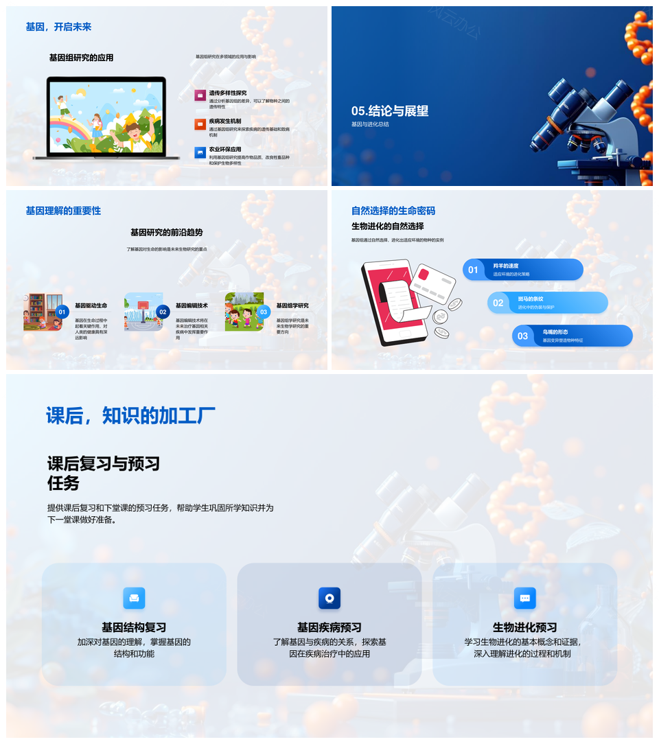 这是一张生物基因学遗传学基因进化蛋白质基因组教学PPT模板,包含生物基因学、遗传学、基因、进化、蛋白质、基因组、教学等主题内容,也可用作生物基因学遗传学基因进化、遗传学基因进化蛋白质、基因进化蛋白质基因组、生物基因学遗传学、基因学遗传学基因、遗传学基因进化、基因进化蛋白质、进化蛋白质基因组、蛋白质基因组教学、生物基因学、基因学遗传学、遗传学基因、基因进化、进化蛋白质、蛋白质基因组等PPT场景使用。 风云办公提供的生物基因学遗传学基因进化蛋白质基因组教学PPT模板,下载格式为pptx,一共23页,作品中文字及图均可以修改和编辑,图片更改请在作品中右键图片并更换,文字修改请直接点击文字进行修改。