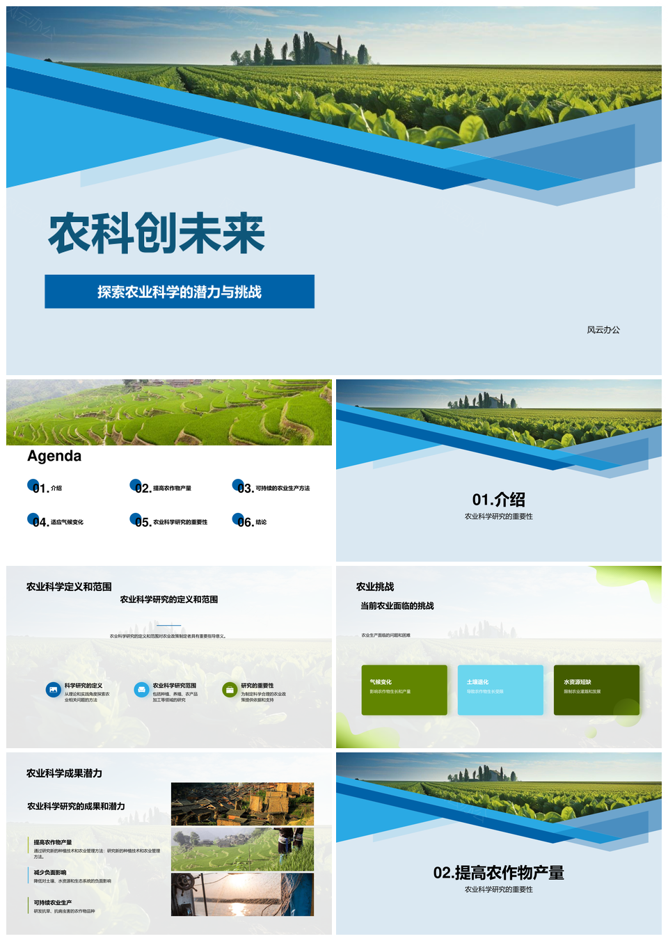 风云办公提供的农科融合科政助力农林可持续创新PPT模板,下载格式为pptx,一共24页,作品中文字及图均可以修改和编辑,图片更改请在作品中右键图片并更换,文字修改请直接点击文字进行修改。