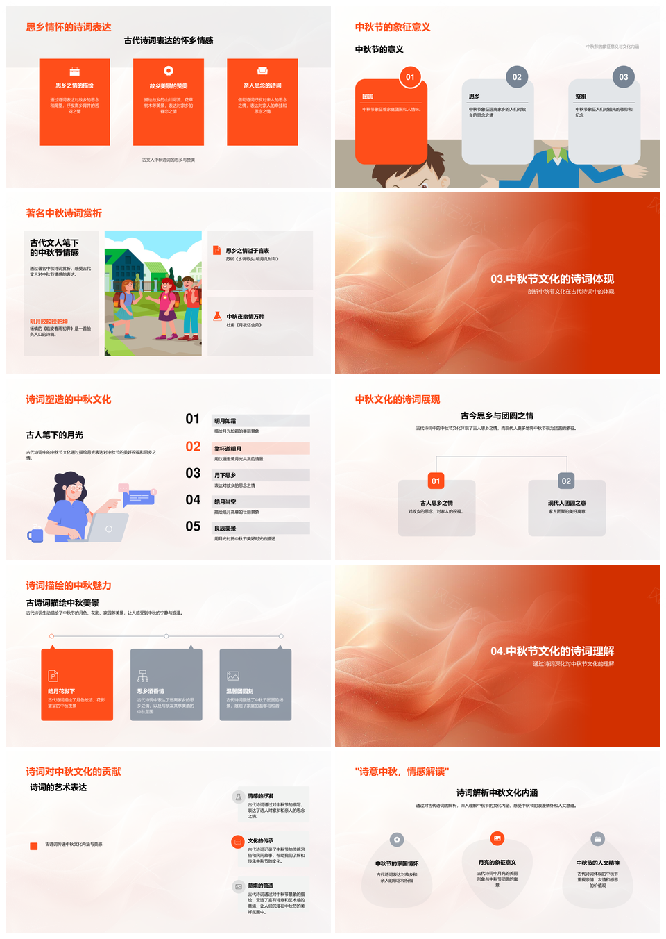 这是一张中秋诗词赏析文人祭月象征PPT模板,包含中秋、诗词、赏析、文人、祭月、象征等主题内容,也可用作中秋诗词赏析文人、中秋文人祭月象征、中秋诗词赏析、诗词赏析文人、文人祭月象征、中秋文人祭月、中秋祭月象征、中秋诗词、诗词赏析、赏析文人、文人祭月、祭月象征、中秋祭月、诗词文人、中秋文人等PPT场景使用。 风云办公提供的中秋诗词赏析文人祭月象征PPT模板,下载格式为pptx,一共23页,作品中文字及图均可以修改和编辑,图片更改请在作品中右键图片并更换,文字修改请直接点击文字进行修改。