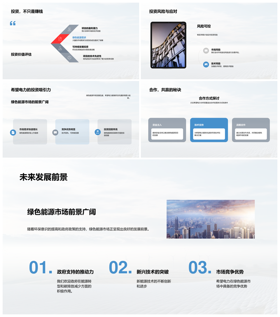 这是一张绿动未来电力项目环保投资绿能融资创新能源回报PPT模板,包含绿动未来、电力项目、环保投资、绿能融资、创新能源、回报等主题内容,也可用作绿动未来电力项目环保投资、绿动未来电力项目、未来电力项目环保投资、电力项目环保投资绿能、项目环保投资绿能融资、环保投资绿能融资创新、投资绿能融资创新能源、绿能融资创新能源回报、绿动未来环保投资、电力项目绿能融资、环保投资创新能源、绿能融资能源回报、绿动未来电力、环保投资绿能、绿能融资创新、创新能源回报、绿动未来、电力项目、环保投资、绿能融资、创新能源等PPT场景使用。 风云办公提供的绿动未来电力项目环保投资绿能融资创新能源回报PPT模板,下载格式为pptx,一共33页,作品中文字及图均可以修改和编辑,图片更改请在作品中右键图片并更换,文字修改请直接点击文字进行修改。