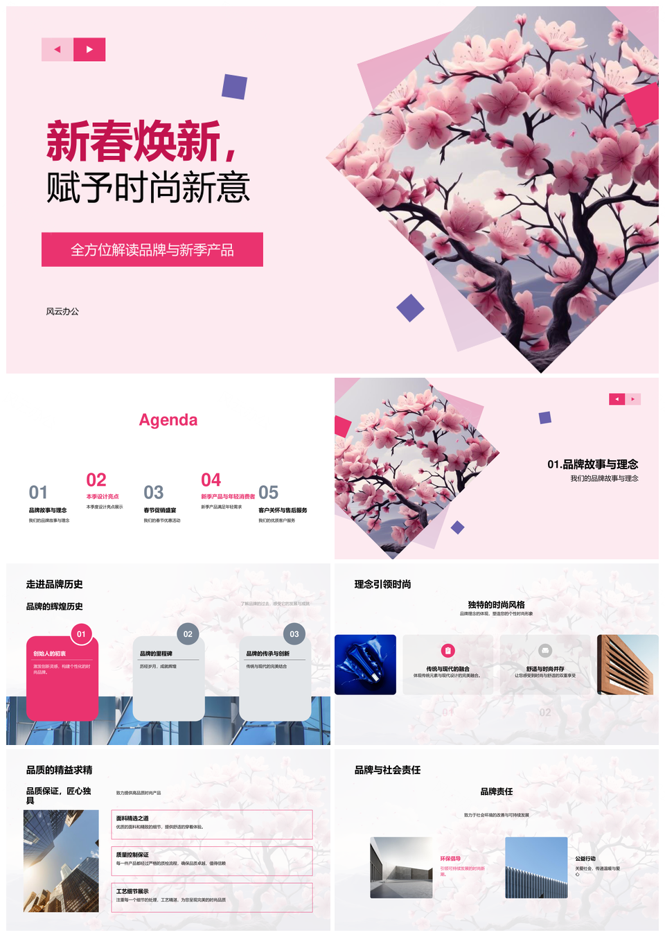 风云办公提供的新春焕新品牌新季樱花可持续时尚营销PPT模板,下载格式为pptx,一共28页,作品中文字及图均可以修改和编辑,图片更改请在作品中右键图片并更换,文字修改请直接点击文字进行修改。