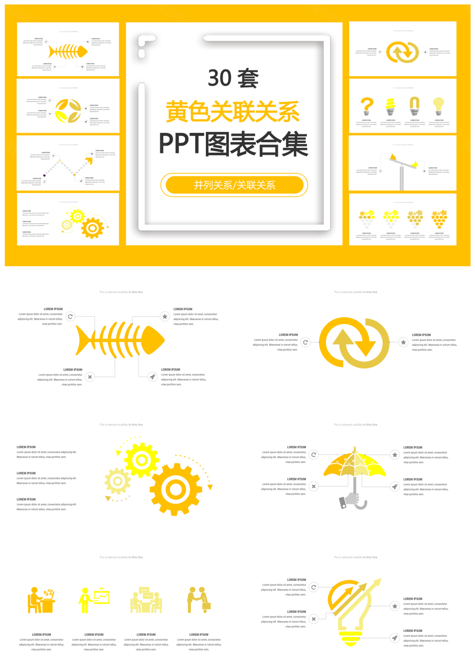 这是一张黄色关联关系并列关系关联关系PPT图表合集,包含黄色、关联关系、并列关系、图表合集等主题内容,也可用作黄色、关联关系、并列关系、PPT、图表合集