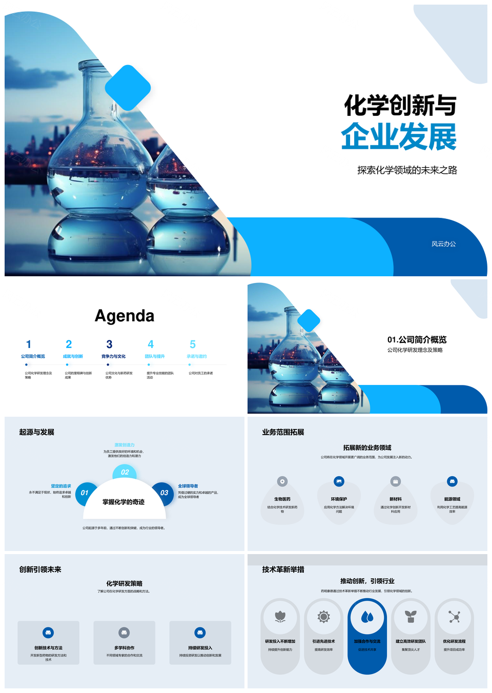 风云办公提供的化学创新核心技术驱动企业新药研发PPT模板,下载格式为pptx,一共33页,作品中文字及图均可以修改和编辑,图片更改请在作品中右键图片并更换,文字修改请直接点击文字进行修改。