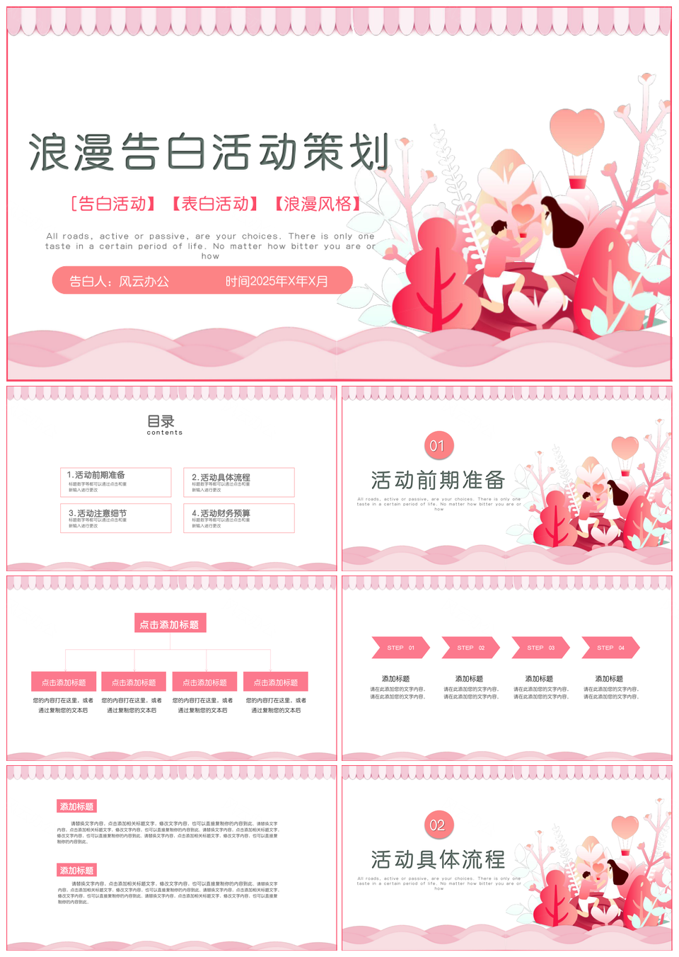 这是一张2025粉色浪漫告白活动策划执行PPT模板,包含粉色、浪漫、告白、活动、策划、执行等主题内容,也可用作粉色浪漫告白活动策划、粉色浪漫活动策划执行、浪漫告白活动策划执行、粉色浪漫告白活动、粉色浪漫告白执行、浪漫告白活动策划、粉色活动策划执行、浪漫活动策划执行、粉色浪漫告白、粉色活动策划、浪漫活动策划、活动策划执行、粉色浪漫、浪漫告白、活动策划等PPT场景使用。