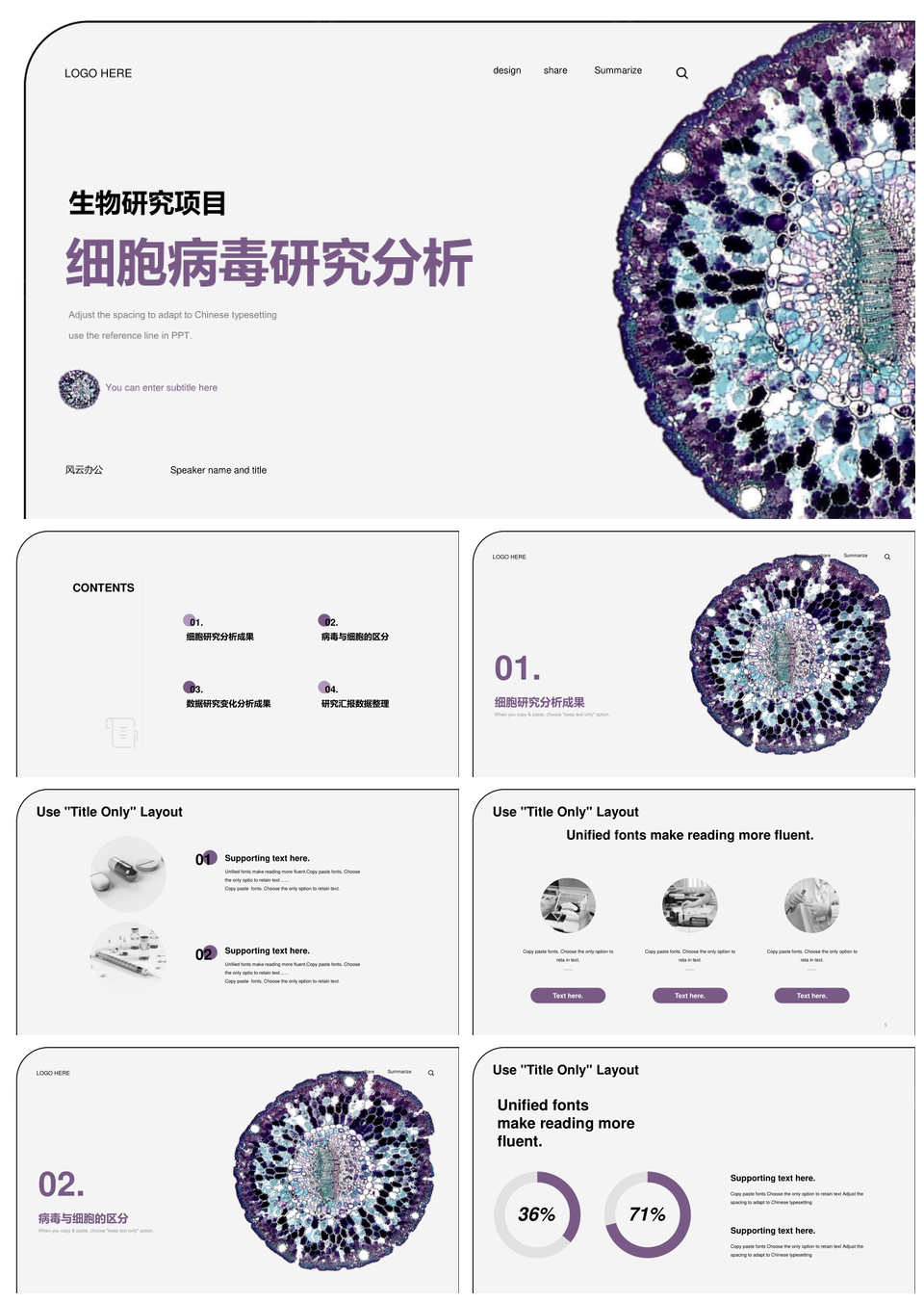 风云办公提供的医疗细胞病毒研究分析PPT模板,下载格式为pptx,一共15页,作品中文字及图均可以修改和编辑,图片更改请在作品中右键图片并更换,文字修改请直接点击文字进行修改。