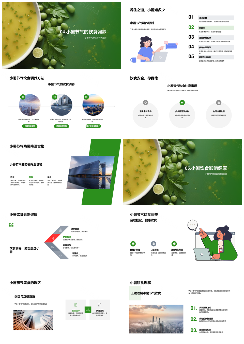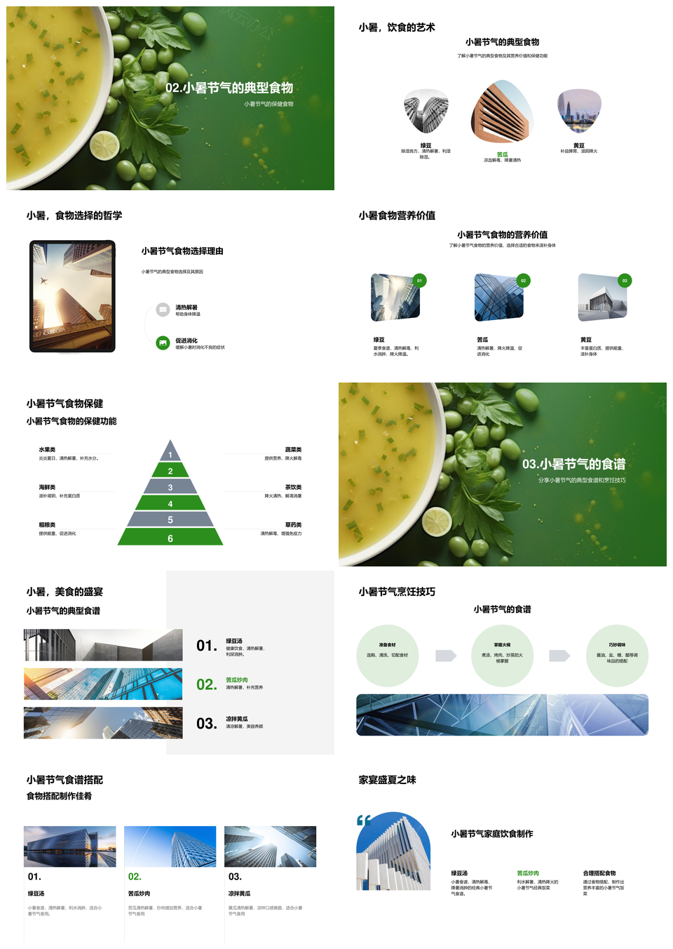 这是一张小暑节气养生菜谱绿豆汤苦瓜炒肉家庭健康PPT模板,包含小暑节气、养生菜谱、绿豆汤、苦瓜炒肉、家庭健康等主题内容,也可用作小暑节气养生菜谱、节气养生菜谱绿豆汤、养生菜谱绿豆汤苦瓜炒肉、菜谱绿豆汤苦瓜炒肉家庭、绿豆汤苦瓜炒肉家庭健康、小暑节气养生、节气养生菜谱、养生菜谱绿豆汤、菜谱绿豆汤苦瓜炒肉、绿豆汤苦瓜炒肉家庭、苦瓜炒肉家庭健康、小暑节气、节气养生、养生菜谱、家庭健康等PPT场景使用。 风云办公提供的小暑节气养生菜谱绿豆汤苦瓜炒肉家庭健康PPT模板,下载格式为pptx,一共28页,作品中文字及图均可以修改和编辑,图片更改请在作品中右键图片并更换,文字修改请直接点击文字进行修改。