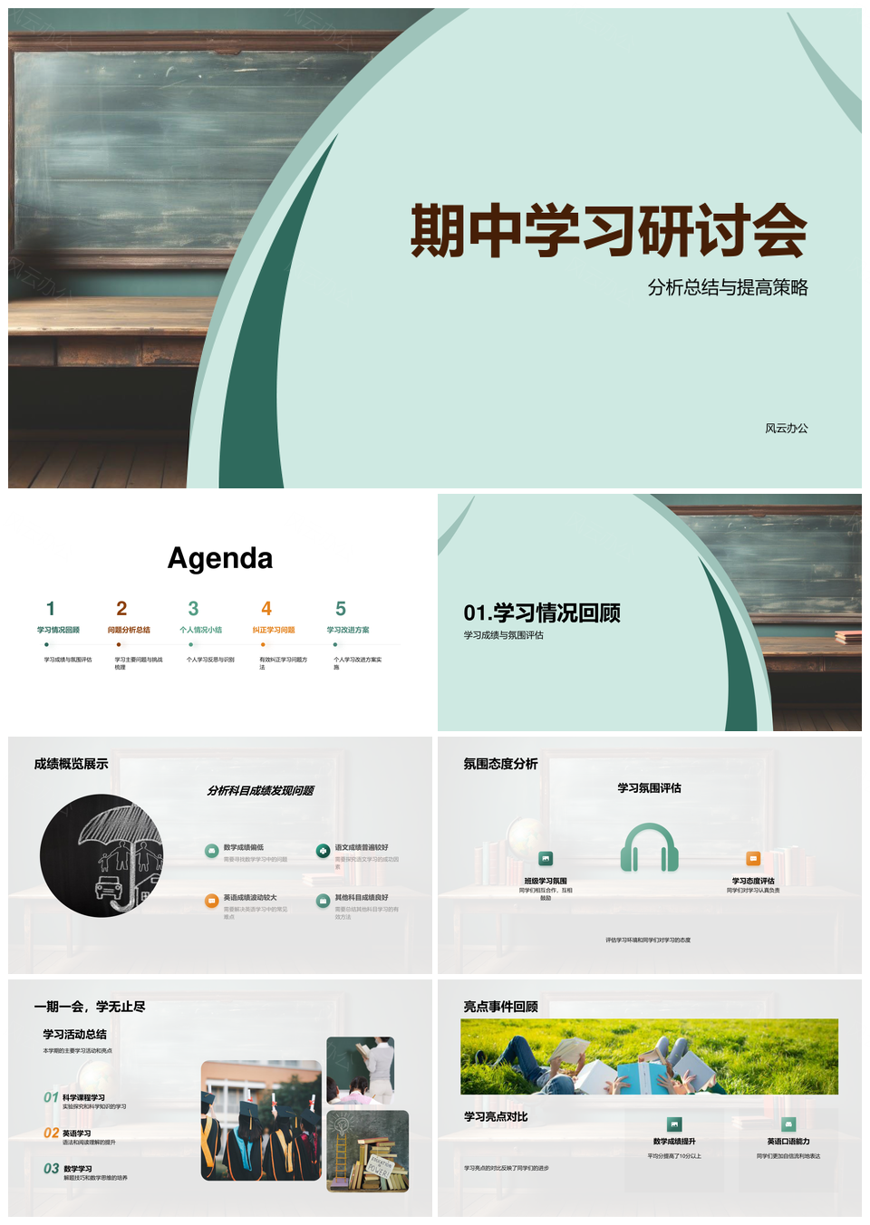 风云办公提供的期中学习研讨分析数英难点总结提策略PPT模板,下载格式为pptx,一共33页,作品中文字及图均可以修改和编辑,图片更改请在作品中右键图片并更换,文字修改请直接点击文字进行修改。