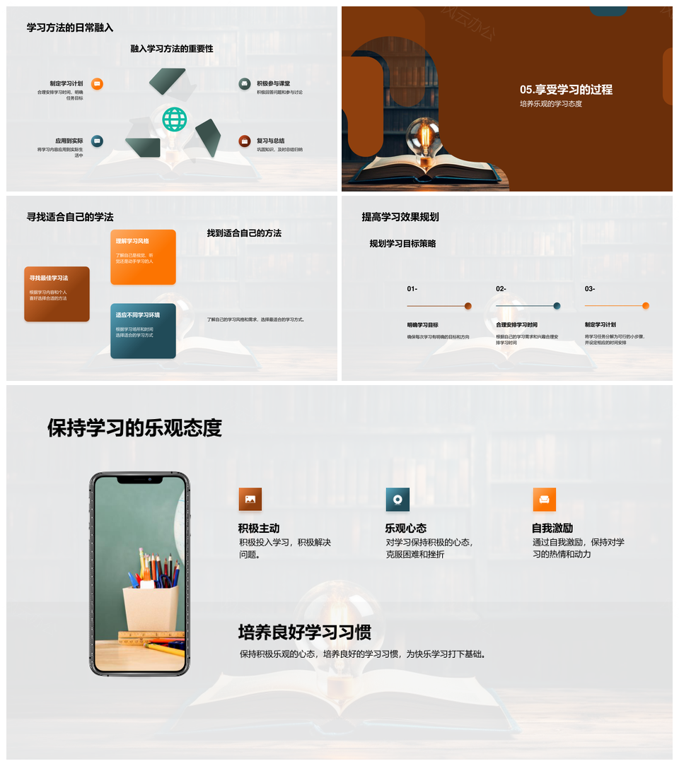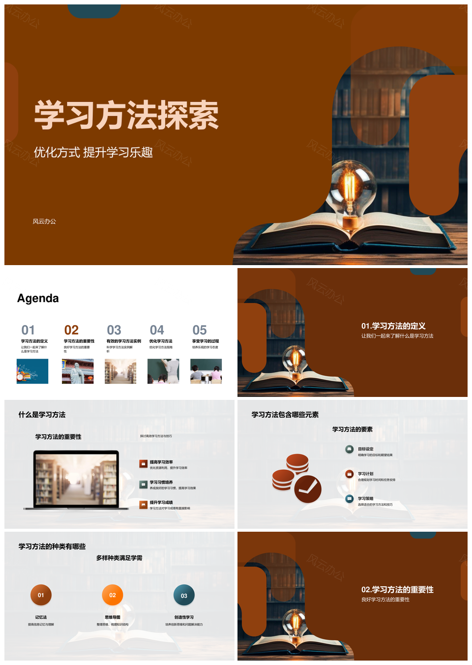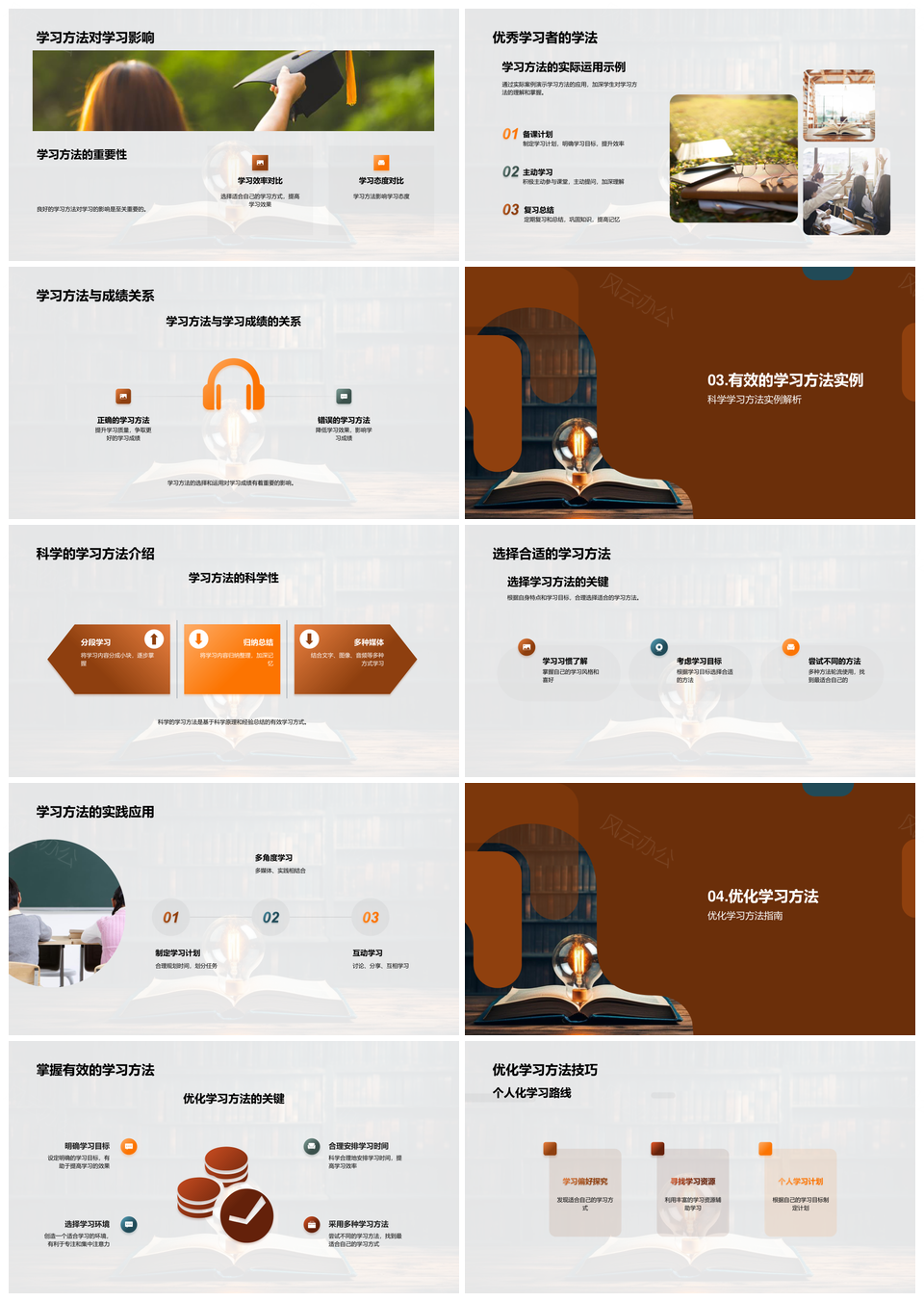 风云办公提供的科学学习方法优化教育乐趣成绩提升PPT模板,下载格式为pptx,一共23页,作品中文字及图均可以修改和编辑,图片更改请在作品中右键图片并更换,文字修改请直接点击文字进行修改。