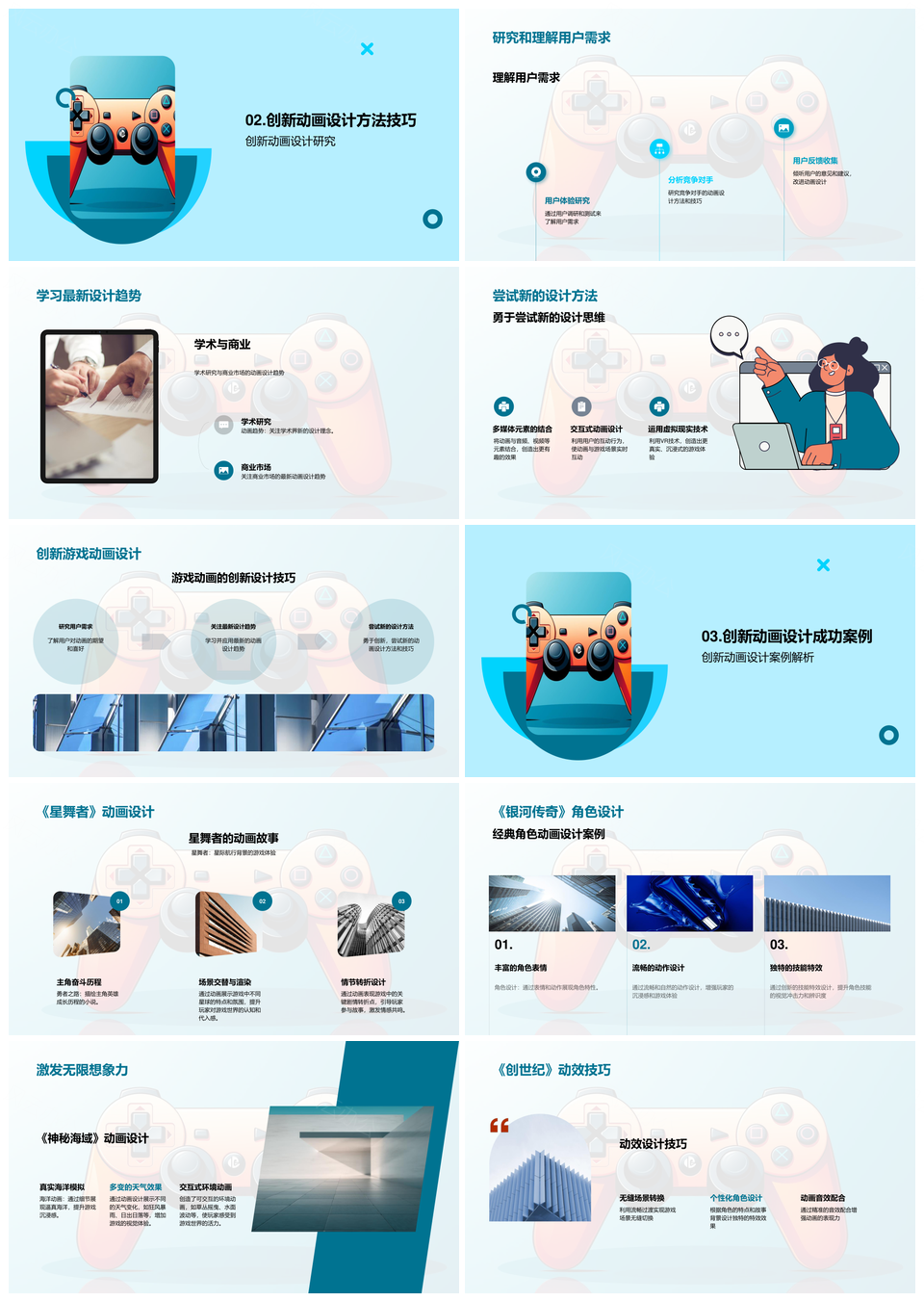 这是一张游戏动画创新设计趋势与挑战方法PPT模板,包含游戏、动画、创新、设计、趋势、挑战、方法等主题内容,也可用作游戏动画创新设计、动画创新设计趋势、创新设计趋势挑战、设计趋势挑战方法、游戏动画创新趋势、动画创新趋势挑战、创新设计挑战方法、游戏动画设计挑战、动画趋势挑战方法、游戏创新趋势挑战、设计趋势方法、游戏动画挑战方法、动画设计趋势方法、创新挑战方法、趋势挑战方法等PPT场景使用。