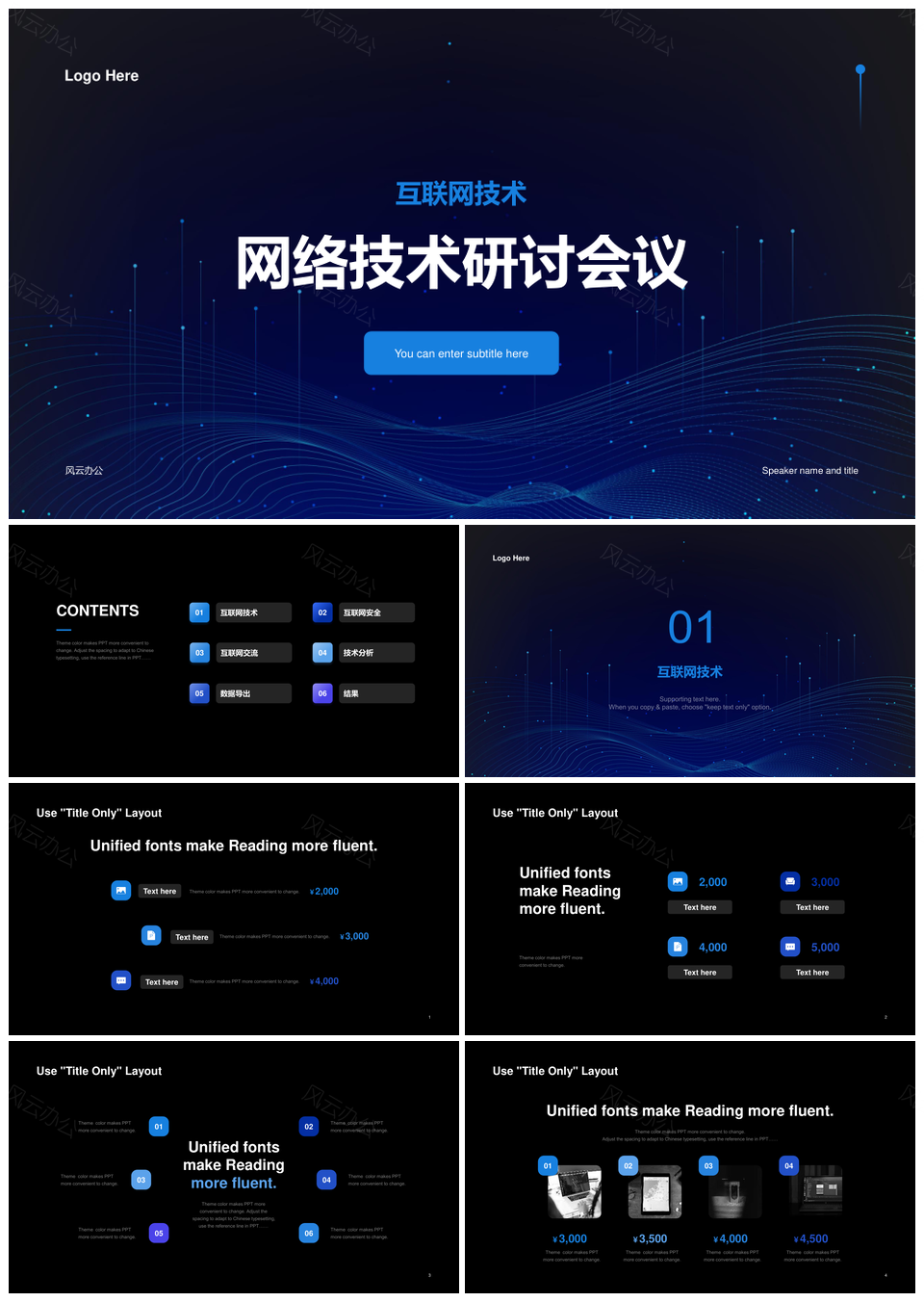 蓝色科技网络安全技术研讨数据分析PPT模板推荐