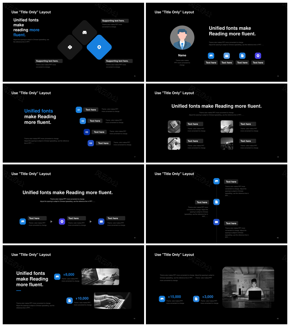 以科技蓝为主色调,融合浅蓝至藏蓝的渐变层次,打造理性冷静的视觉基调。专为科技汇报、商务提案、职场总结场景设计,模块化排版适配多样化内容结构。内置48组可编辑图表与科技感图示,支持数据可视化呈现。版式采用开放式留白与分栏布局,通过严谨的图文比例强化逻辑表达。灰蓝过渡色系平衡专业感与视觉温度,适合需要克制表达的场景。全模板提供智能图形占位符,可自由调整图文组合方式,保持品牌级视觉统一性。素材库含渐变光效、三维箭头等商务风元素,兼顾功能性与美学深度。