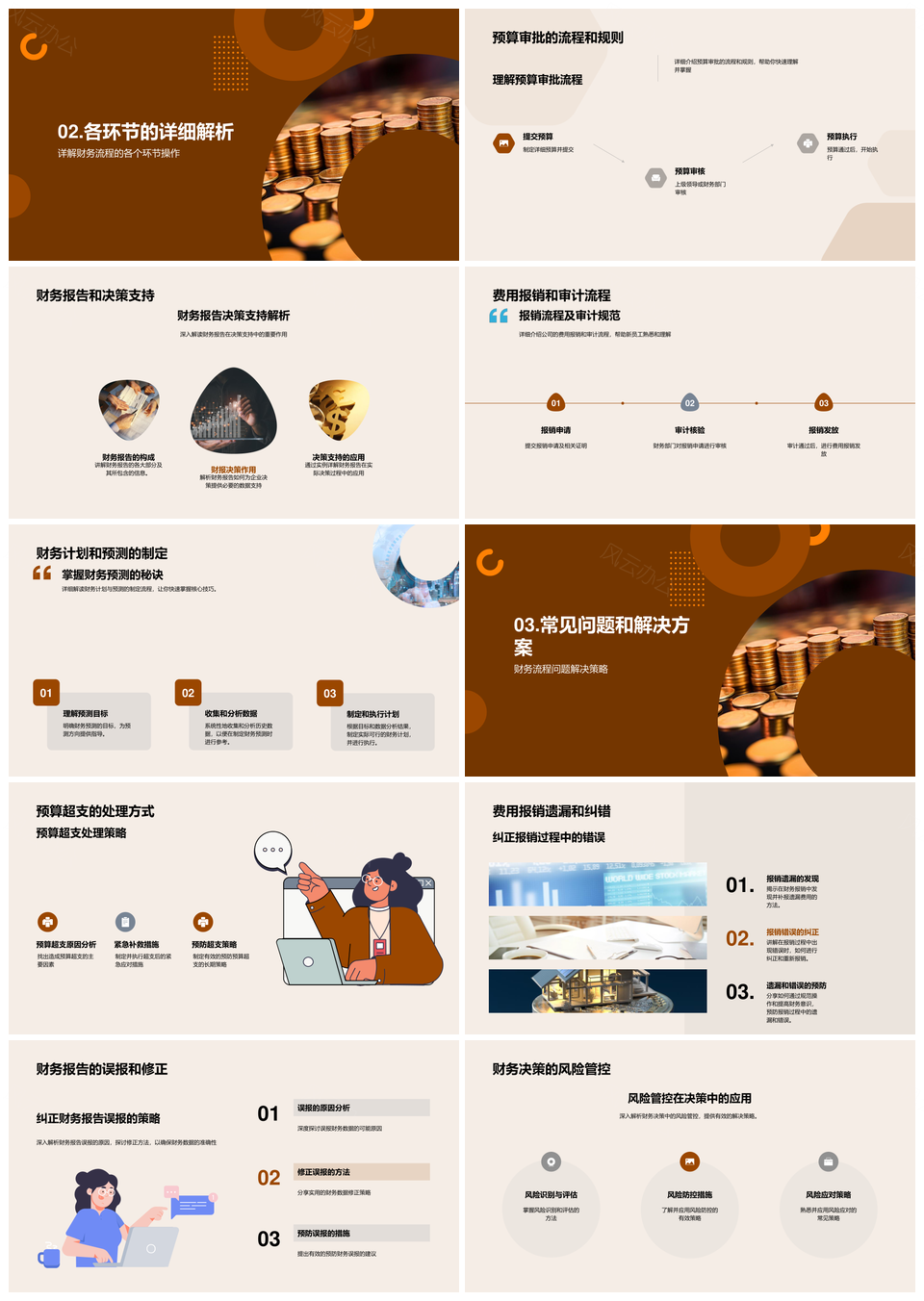 财务流程预算审批报销审计报告超支分析PPT模板推荐