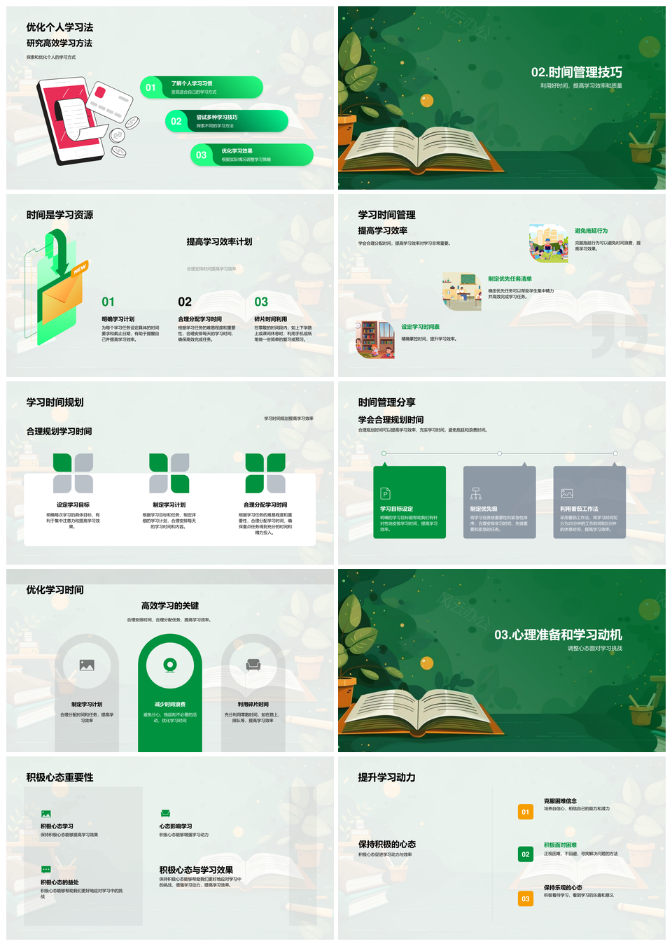 高效学习策略时间管理计划优化方法与心态动力学生指南PPT模板推荐