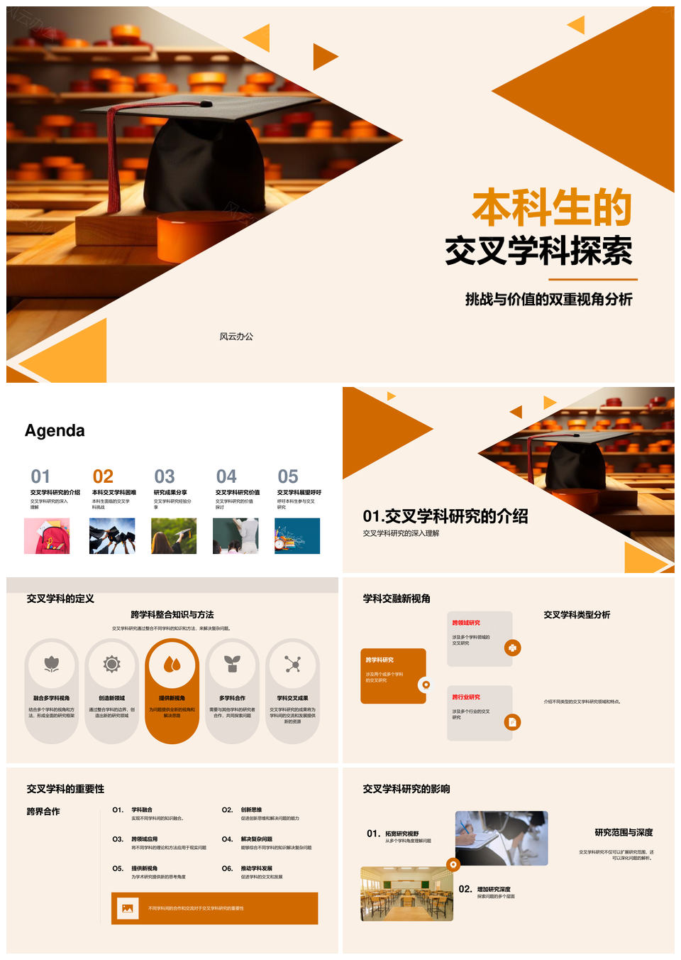 风云办公提供的本科生交叉学科探索挑战与价值研讨PPT模板,下载格式为pptx,一共33页,作品中文字及图均可以修改和编辑,图片更改请在作品中右键图片并更换,文字修改请直接点击文字进行修改。