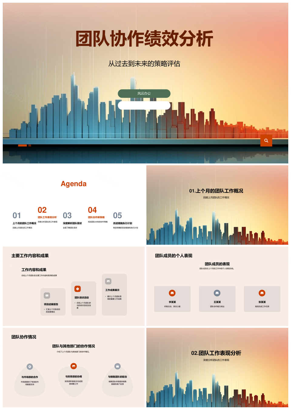 这是一张团队协作绩效评估目标达成月度分析报告PPT模板,包含团队协作、绩效评估、目标达成、月度分析、报告等主题内容,也可用作团队协作绩效评估、绩效评估目标达成、目标达成月度分析、团队协作目标达成、绩效评估月度分析、绩效评估目标、评估目标达成、月度分析报告、团队协作绩效、协作绩效评估、团队协作、绩效评估、目标达成、月度分析、分析报告等PPT场景使用。 风云办公提供的团队协作绩效评估目标达成月度分析报告PPT模板,下载格式为pptx,一共21页,作品中文字及图均可以修改和编辑,图片更改请在作品中右键图片并更换,文字修改请直接点击文字进行修改。