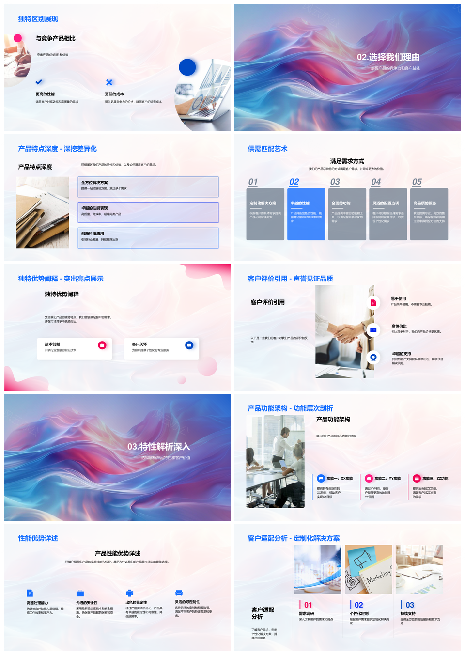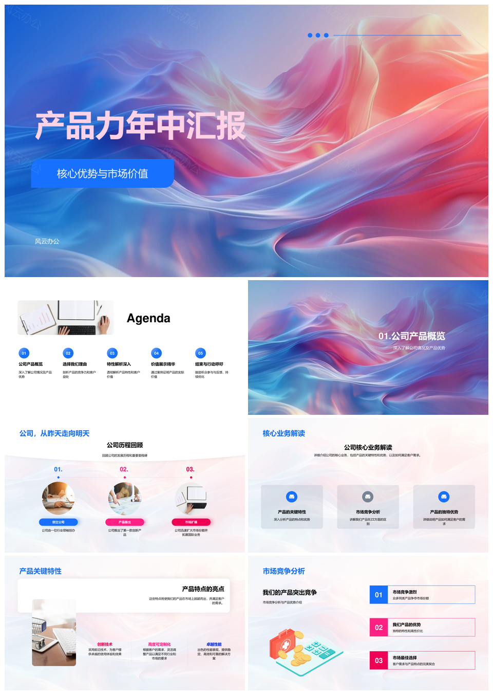 风云办公提供的产品力年中汇报优势价值竞争分析选择PPT模板,下载格式为pptx,一共29页,作品中文字及图均可以修改和编辑,图片更改请在作品中右键图片并更换,文字修改请直接点击文字进行修改。