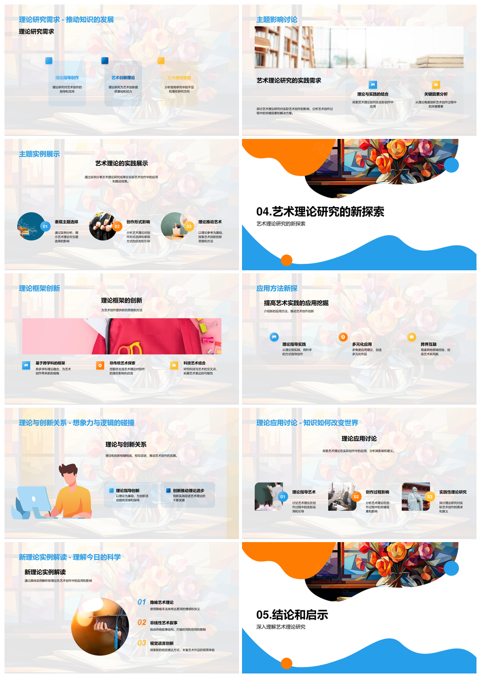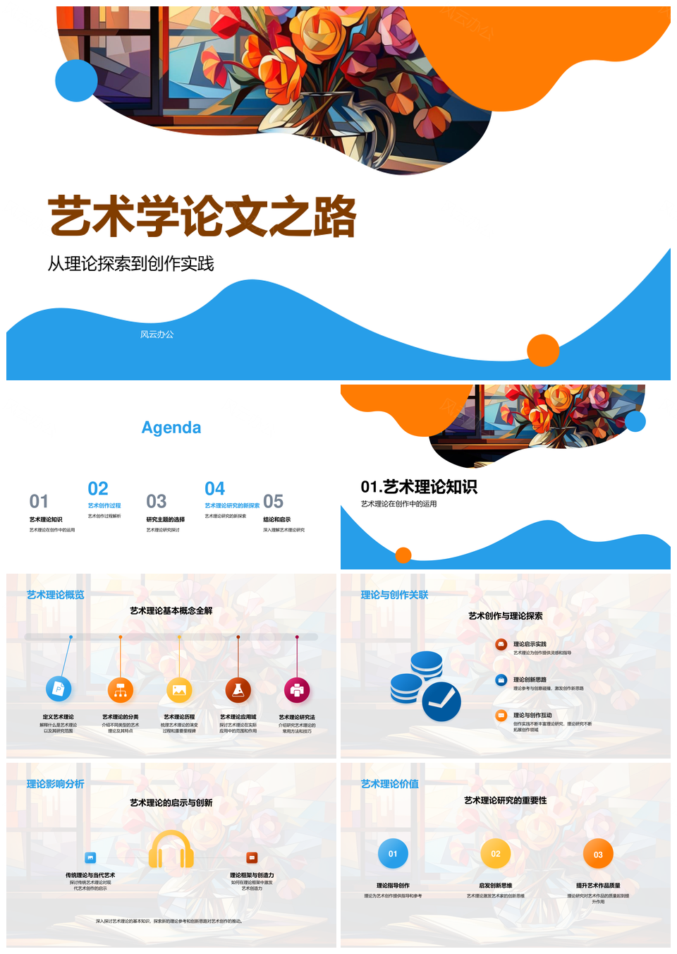 风云办公提供的艺术理论探索与创作实践研究PPT模板,下载格式为pptx,一共33页,作品中文字及图均可以修改和编辑,图片更改请在作品中右键图片并更换,文字修改请直接点击文字进行修改。