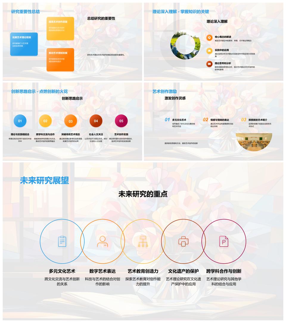 这是一张艺术理论探索与创作实践研究PPT模板,包含艺术理论、探索、创作实践、研究等主题内容,也可用作艺术理论探索研究、艺术理论创作实践、理论探索创作实践、艺术创作实践研究、探索创作实践研究、艺术理论探索、理论探索创作、探索创作实践、创作实践研究、艺术创作实践、理论创作实践、艺术理论创作、艺术理论实践、艺术理论、创作实践等PPT场景使用。
