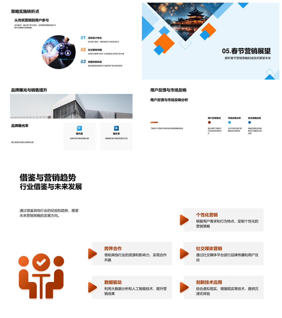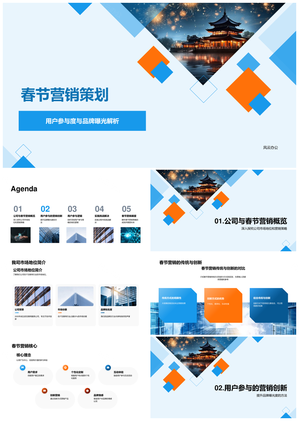 这是一张春节IT互联网烟花营销活动提升用户参与品牌曝光PPT模板,包含春节、IT、互联网、烟花、营销活动、提升、用户、参与、品牌、曝光等主题内容,也可用作春节IT互联网烟花营销活动、春节烟花营销活动提升用户、春节营销活动提升品牌曝光、IT互联网烟花营销活动、互联网烟花营销活动用户、烟花营销活动用户参与、营销活动用户参与品牌、活动用户参与品牌曝光、提升用户参与品牌曝光、春节IT互联网营销、春节烟花用户参与、互联网营销品牌曝光、用户参与品牌曝光、春节活动提升用户、烟花营销品牌曝光等PPT场景使用。 风云办公提供的春节IT互联网烟花营销活动提升用户参与品牌曝光PPT模板,下载格式为pptx,一共23页,作品中文字及图均可以修改和编辑,图片更改请在作品中右键图片并更换,文字修改请直接点击文字进行修改。