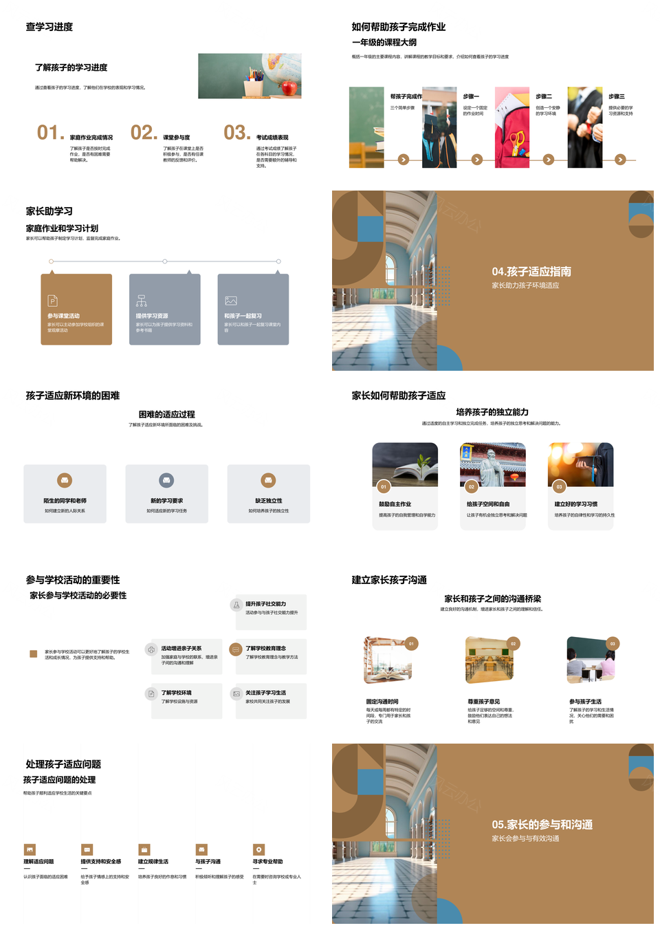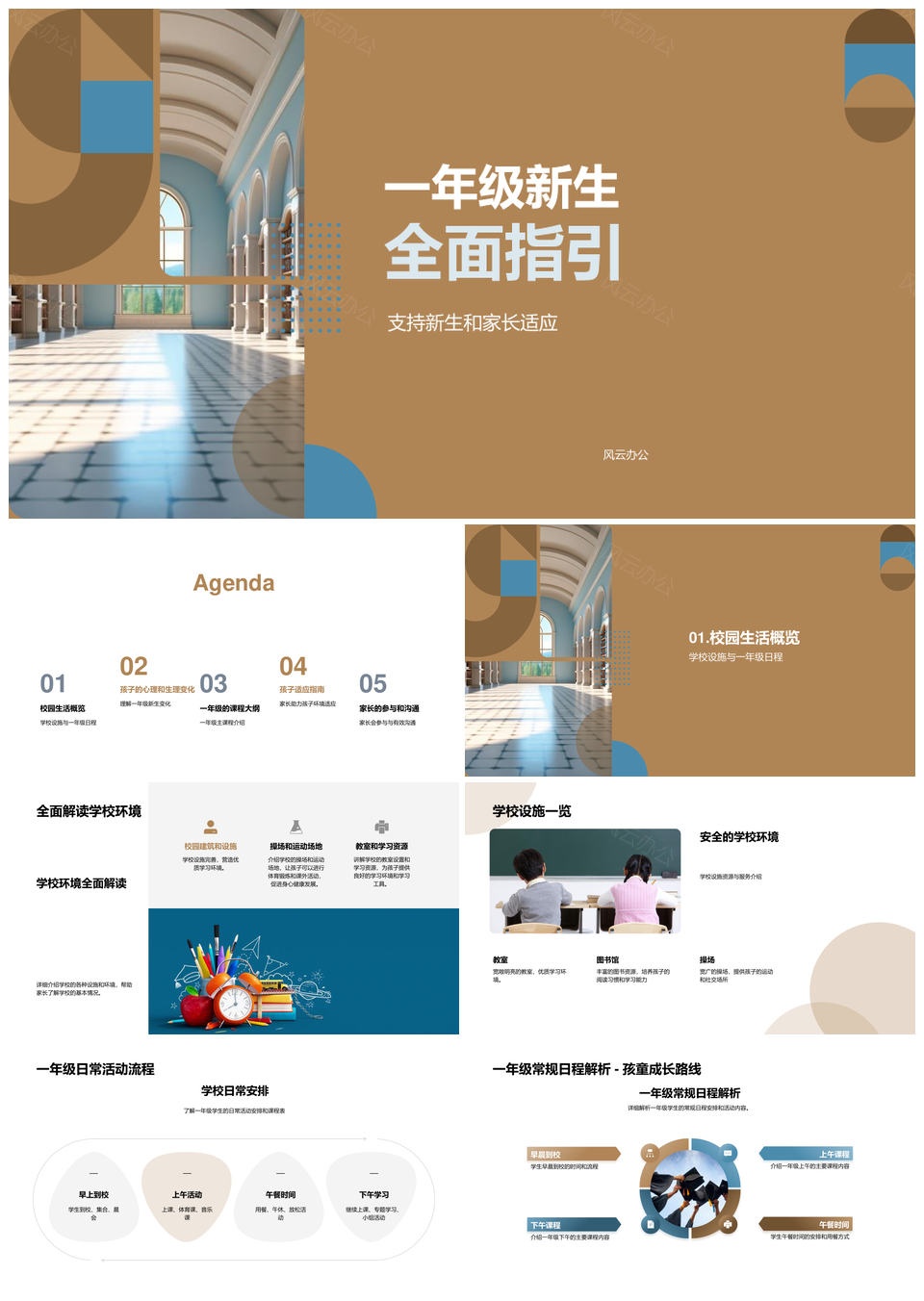 风云办公提供的一年级新生家长指南课程设施身心适应PPT模板,下载格式为pptx,一共33页,作品中文字及图均可以修改和编辑,图片更改请在作品中右键图片并更换,文字修改请直接点击文字进行修改。
