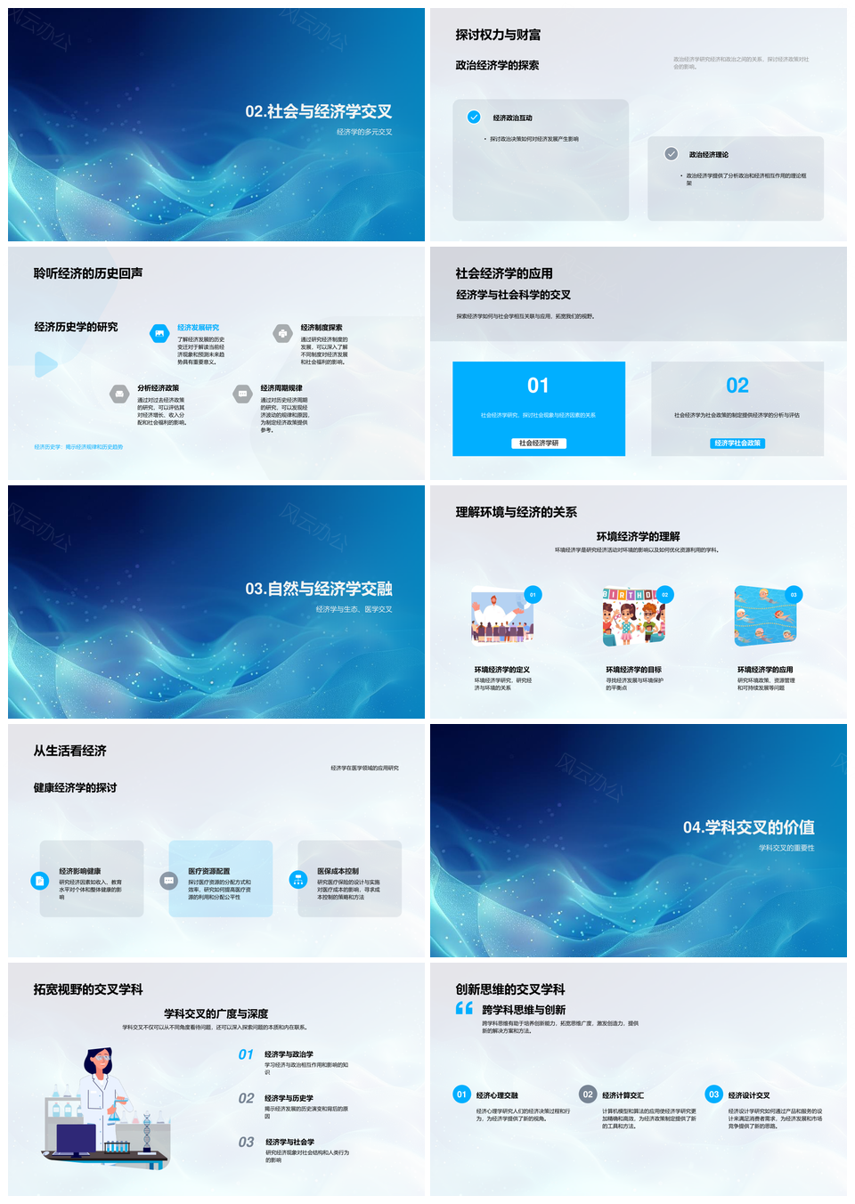 风云办公提供的跨学科经济学交叉应用探索PPT模板,下载格式为pptx,一共23页,作品中文字及图均可以修改和编辑,图片更改请在作品中右键图片并更换,文字修改请直接点击文字进行修改。