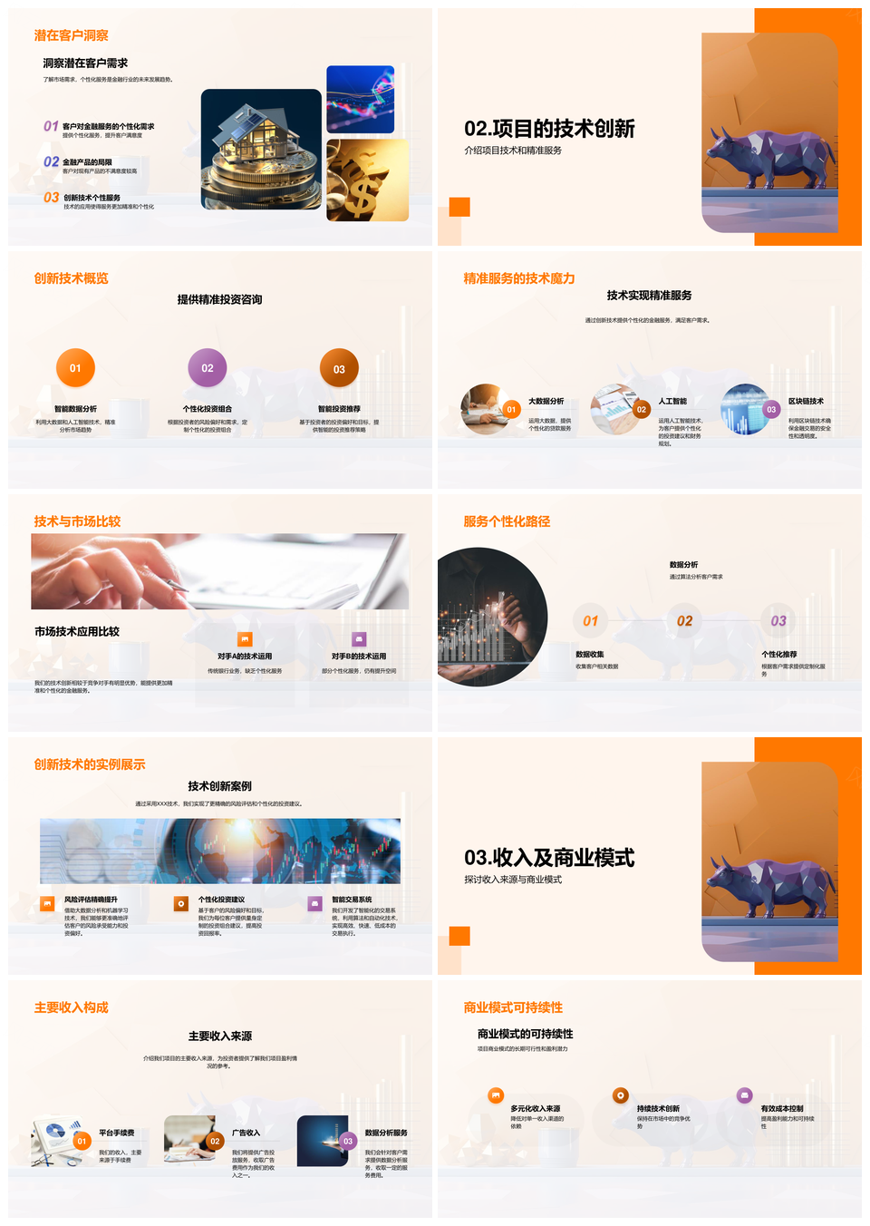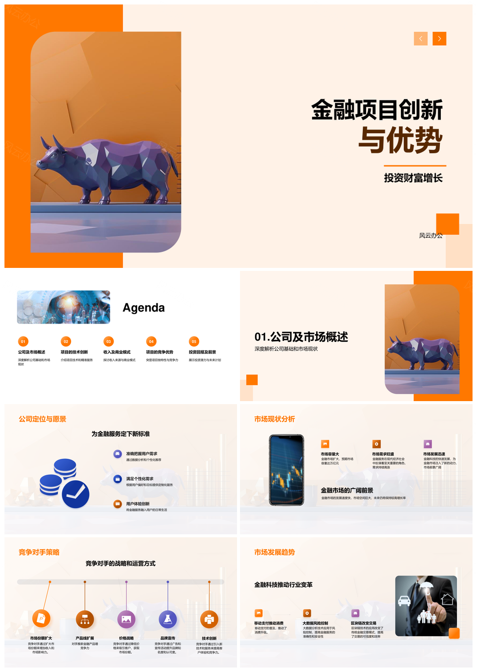 风云办公提供的金融项目创新技术驱动投资财富增长PPT模板,下载格式为pptx,一共33页,作品中文字及图均可以修改和编辑,图片更改请在作品中右键图片并更换,文字修改请直接点击文字进行修改。