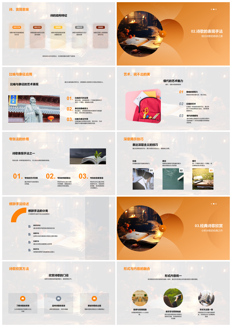 2025诗韵创作修辞析经典羽毛笔意象生活PPT模板