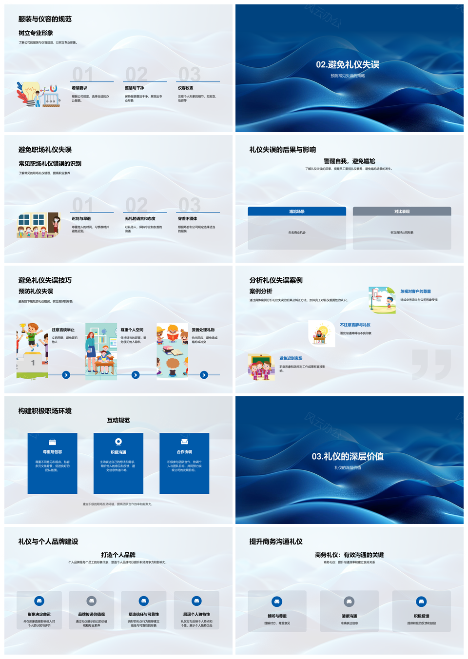 这是一张2025商务礼仪培训企业形象员工品牌沟通接待礼仪规范建设PPT模板,包含2025、商务礼仪、培训、企业、形象、员工、品牌、沟通、接待、礼仪、规范、建设等主题内容,也可用作商务礼仪培训企业形象员工、培训企业形象员工品牌、企业形象员工品牌沟通、员工品牌沟通接待、品牌沟通接待礼仪规范、沟通接待礼仪规范建设、商务礼仪培训企业形象、培训企业形象员工、企业形象员工品牌、员工品牌沟通、品牌沟通接待、沟通接待礼仪规范、接待礼仪规范建设、商务礼仪培训、培训企业形象等PPT场景使用。 风云办公提供的2025商务礼仪培训企业形象员工品牌沟通接待礼仪规范建设PPT模板,下载格式为pptx,一共33页,作品中文字及图均可以修改和编辑,图片更改请在作品中右键图片并更换,文字修改请直接点击文字进行修改。