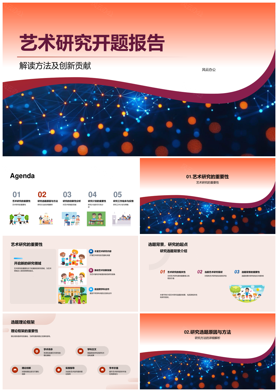 风云办公提供的艺术研究选题理论框架方法贡献PPT模板,下载格式为pptx,一共20页,作品中文字及图均可以修改和编辑,图片更改请在作品中右键图片并更换,文字修改请直接点击文字进行修改。