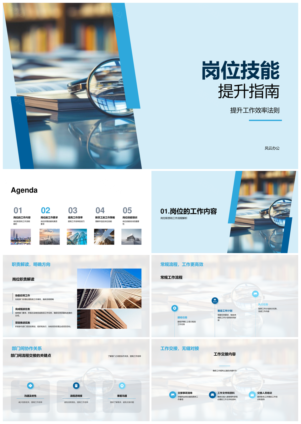 风云办公提供的新员工岗位技能提升与团队协作指南PPT模板,下载格式为pptx,一共28页,作品中文字及图均可以修改和编辑,图片更改请在作品中右键图片并更换,文字修改请直接点击文字进行修改。