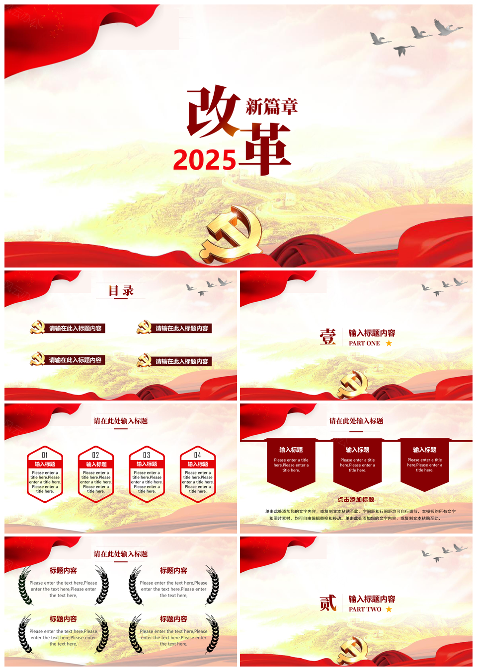 这是一张2025黄色党政风两会总结会议汇报改革开放PPT模板,包含党政风、两会、总结会议、汇报、改革开放等主题内容,也可用作改革开放两会总结会议汇报、党政两会总结会议、黄色党政两会会议、两会总结会议汇报、改革开放会议汇报、党政会议总结汇报、黄色党政两会、两会总结汇报、改革开放两会、党政会议汇报、黄色党政会议、总结会议汇报、改革开放总结、两会会议汇报、党政两会汇报、黄色两会会议、会议汇报总结、改革开放党政、黄色改革开放、两会改革开放等PPT场景使用。 风云办公提供的2025黄色党政风两会总结会议汇报改革开放PPT模板,下载格式为pptx,一共19页,作品中文字及图均可以修改和编辑,图片更改请在作品中右键图片并更换,文字修改请直接点击文字进行修改。