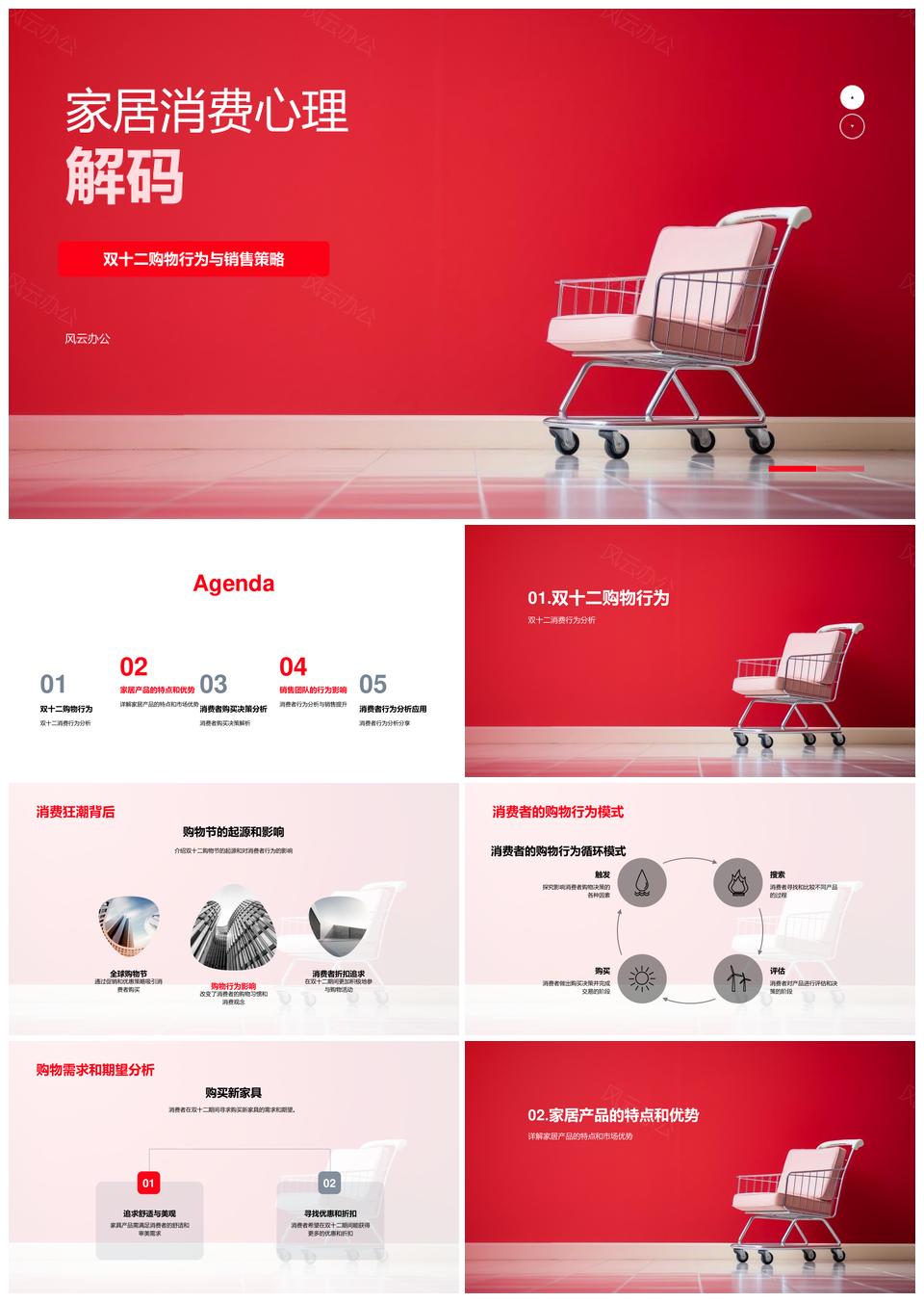 风云办公提供的家居消费心理与行为决策分析PPT模板,下载格式为pptx,一共23页,作品中文字及图均可以修改和编辑,图片更改请在作品中右键图片并更换,文字修改请直接点击文字进行修改。