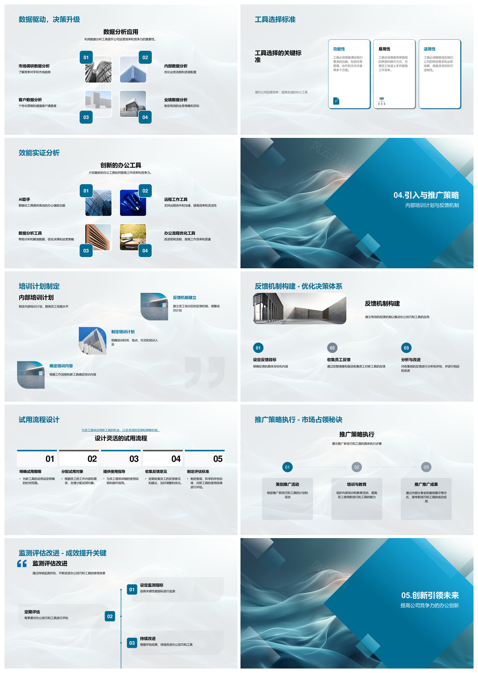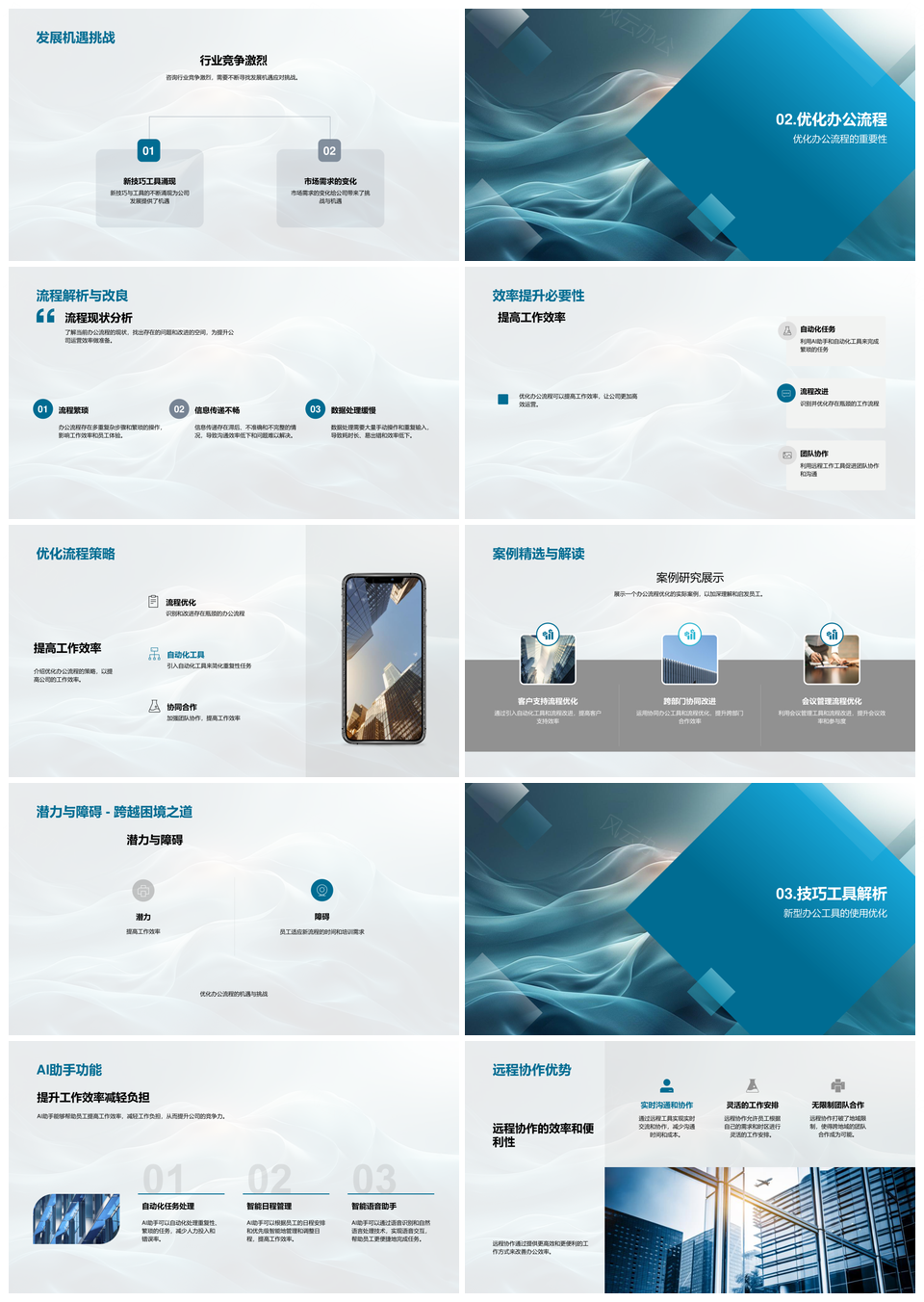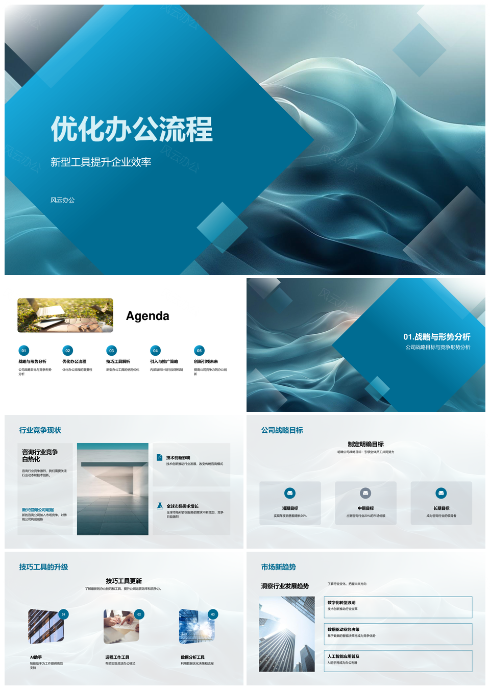 风云办公提供的智能工具优化流程提升企业效率PPT模板,下载格式为pptx,一共33页,作品中文字及图均可以修改和编辑,图片更改请在作品中右键图片并更换,文字修改请直接点击文字进行修改。