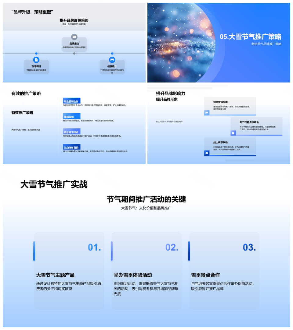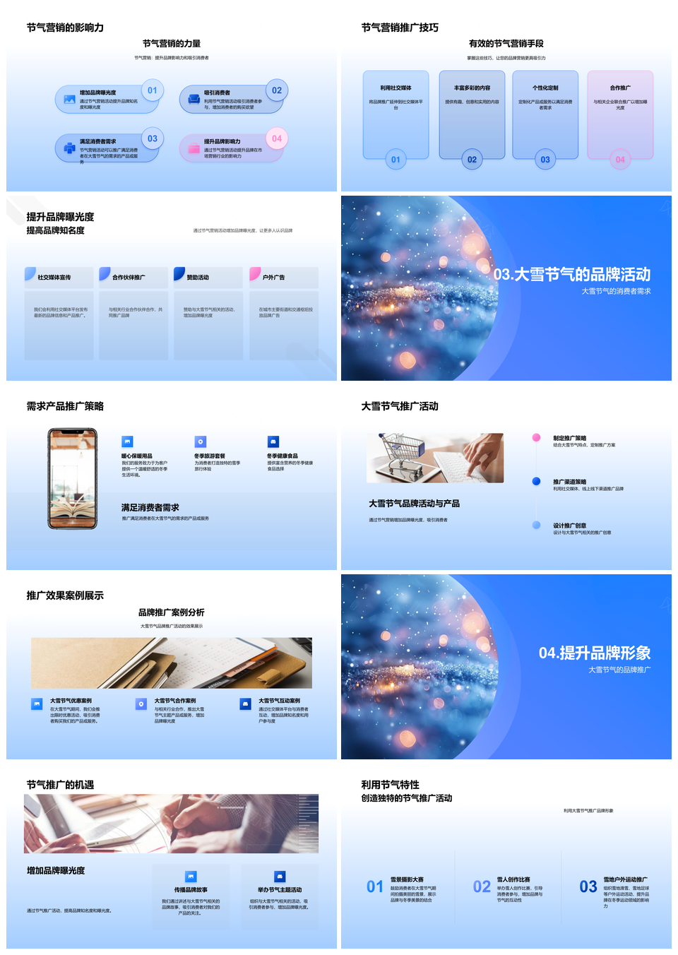 风云办公提供的大雪节气品牌营销融合文化价值策略PPT模板,下载格式为pptx,一共23页,作品中文字及图均可以修改和编辑,图片更改请在作品中右键图片并更换,文字修改请直接点击文字进行修改。