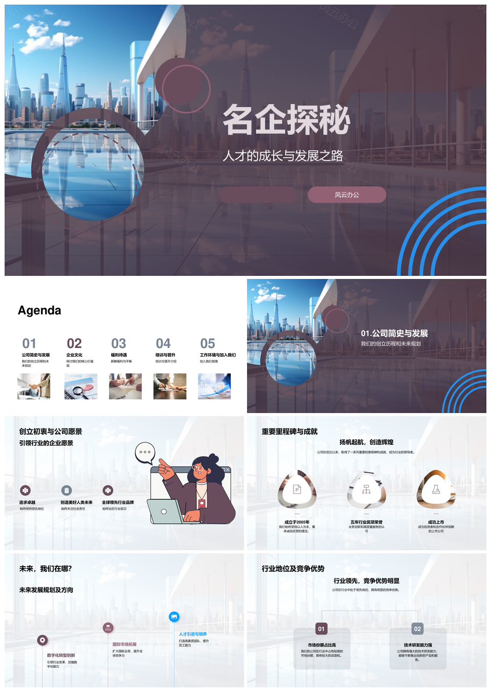风云办公提供的名企发展之路人才成长与愿景探秘PPT模板,下载格式为pptx,一共28页,作品中文字及图均可以修改和编辑,图片更改请在作品中右键图片并更换,文字修改请直接点击文字进行修改。