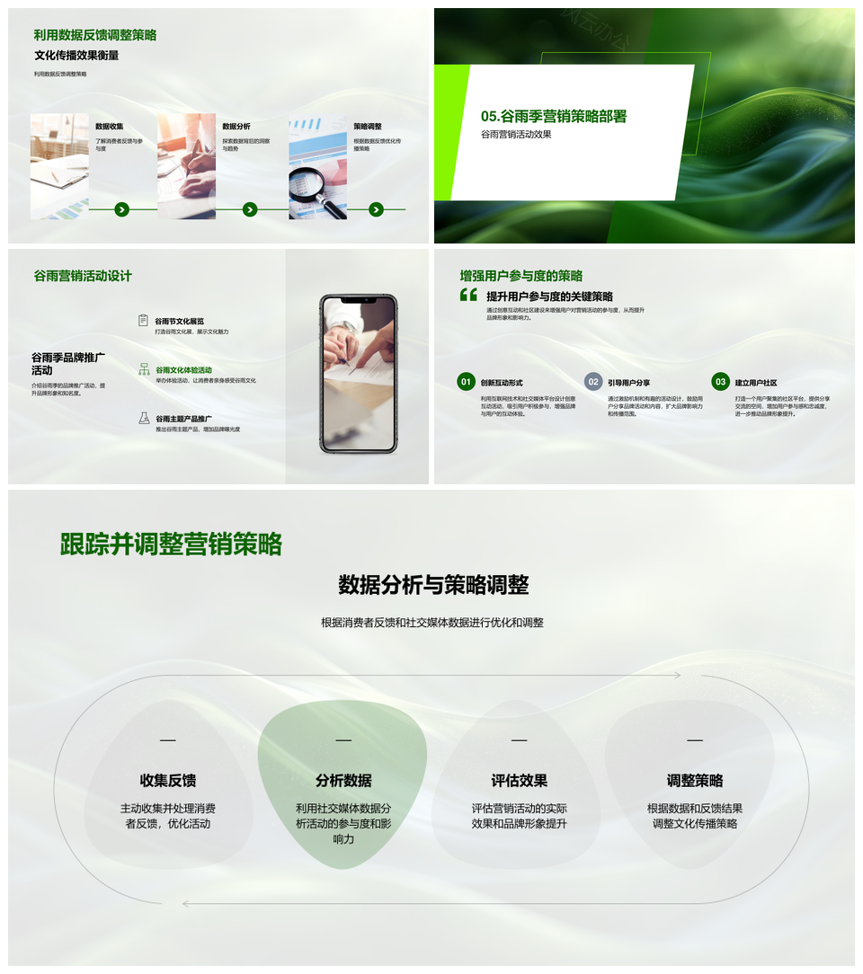 这是一张谷雨文化品牌营销传播数据策略PPT模板,包含谷雨、文化、品牌、营销、传播、数据、策略等主题内容,也可用作谷雨文化品牌营销、品牌营销传播数据、营销传播数据策略、文化品牌营销传播、谷雨文化品牌、文化品牌营销、品牌营销传播、营销传播数据、传播数据策略、谷雨文化、文化品牌、品牌营销、营销传播、传播数据、数据策略等PPT场景使用。
