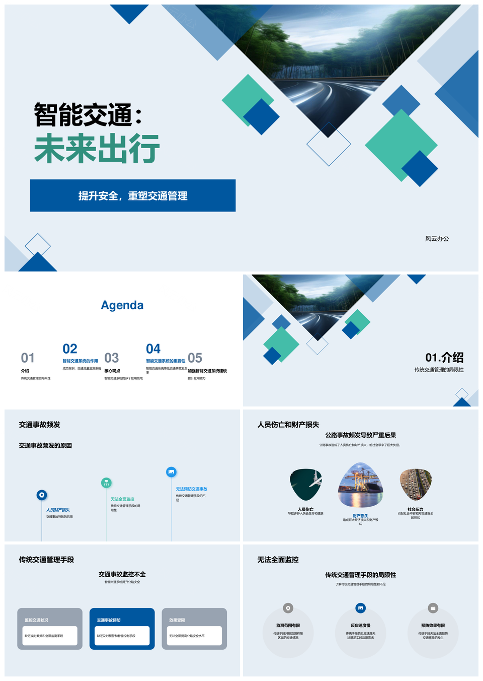 风云办公提供的智能交通系统创新安全出行防事故PPT模板,下载格式为pptx,一共26页,作品中文字及图均可以修改和编辑,图片更改请在作品中右键图片并更换,文字修改请直接点击文字进行修改。