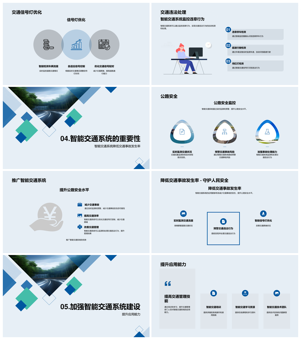 这是一张智能交通系统创新安全出行防事故PPT模板,包含智能交通系统、创新、安全出行、防事故等主题内容,也可用作智能交通系统创新、智能交通安全出行、创新安全出行防事故、智能交通系统、交通系统创新、创新安全出行、安全出行防事故、智能交通安全、交通安全出行、智能安全出行、智能交通创新、智能交通、安全出行、出行防事故、交通安全等PPT场景使用。