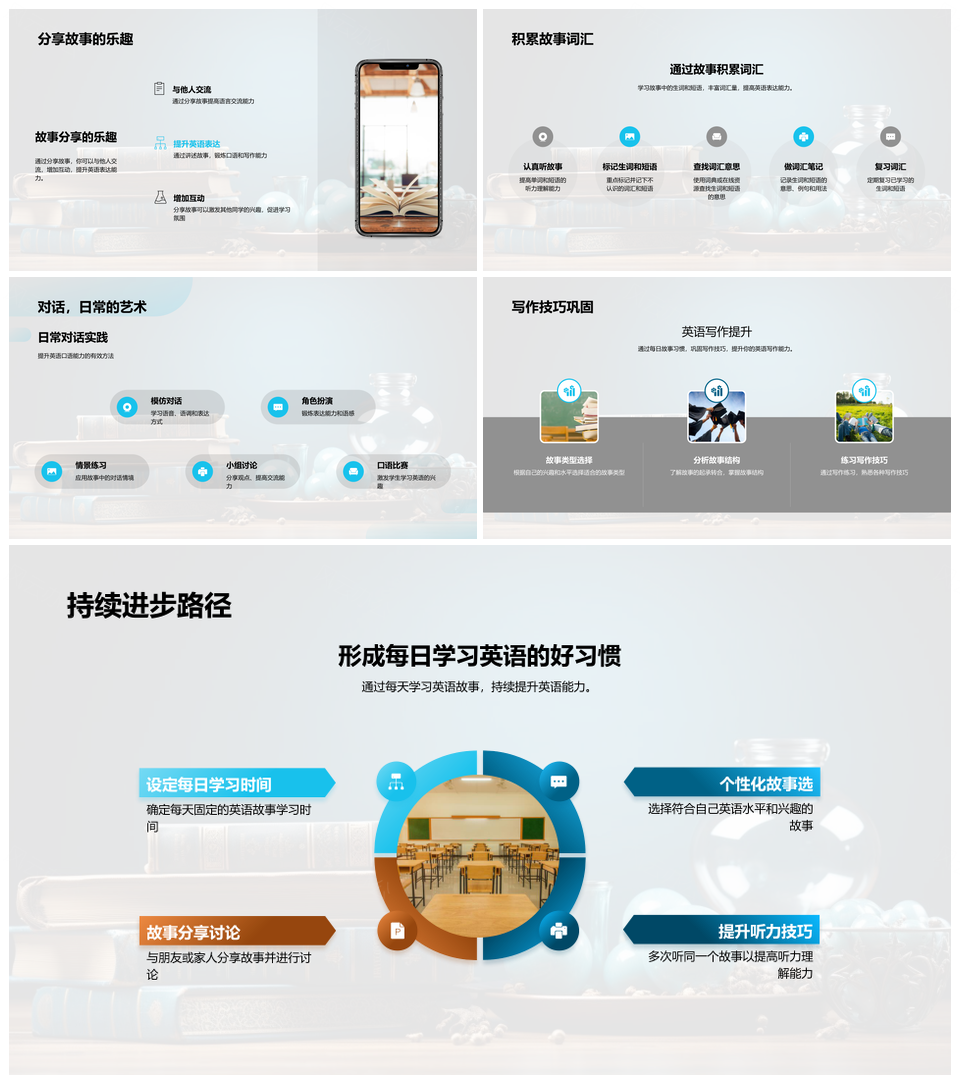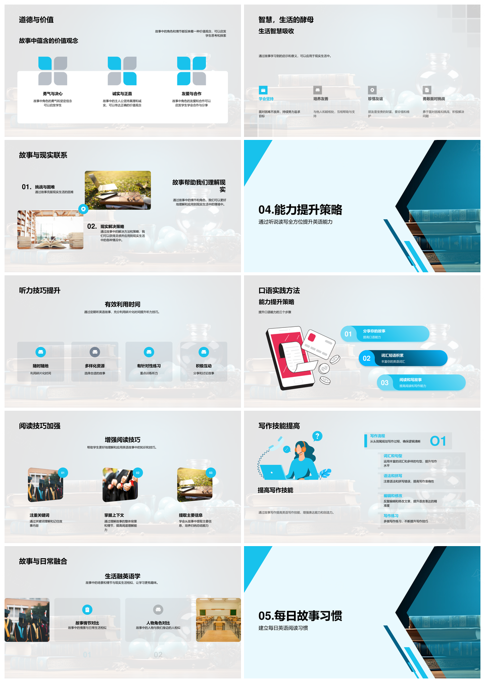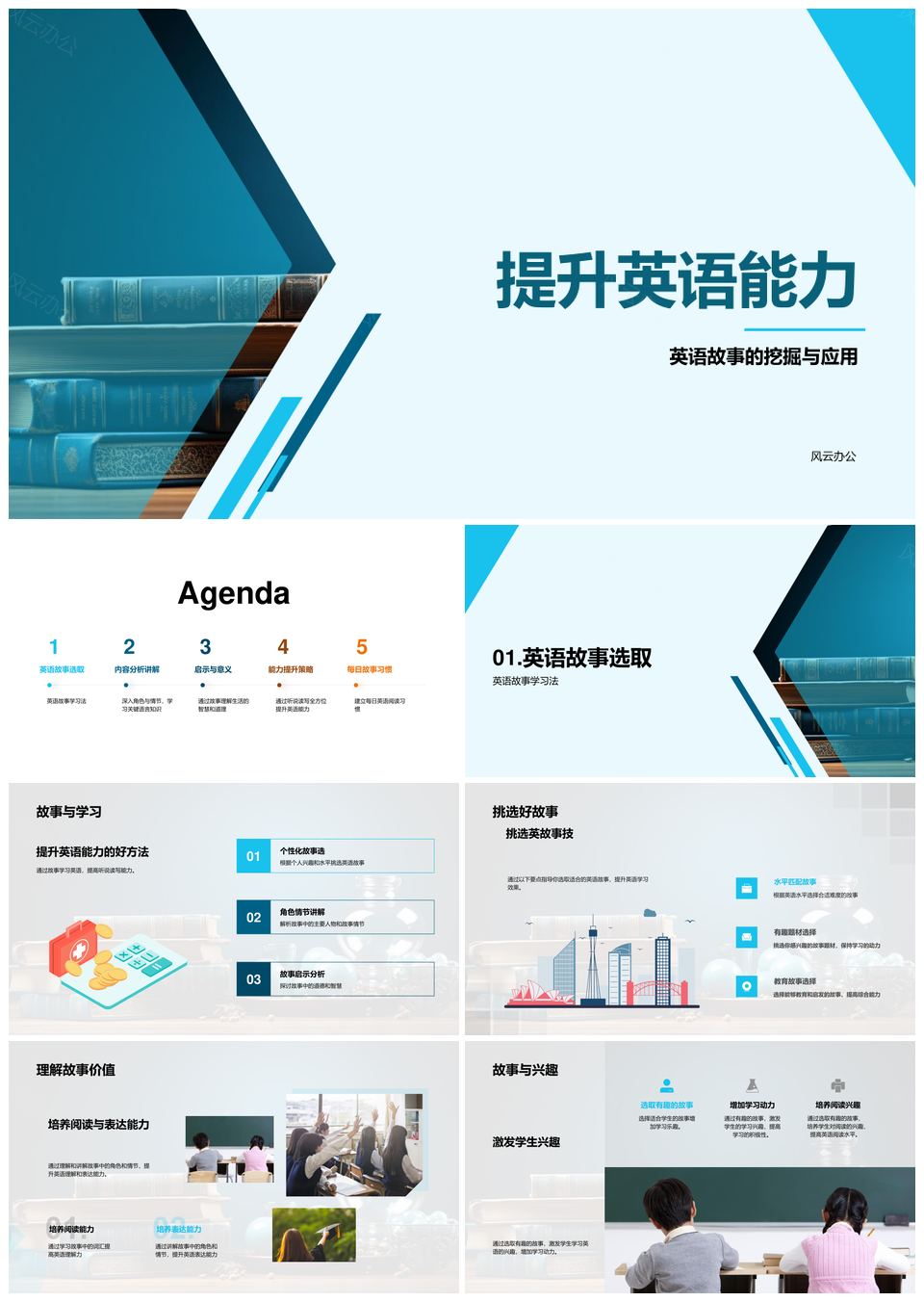 风云办公提供的小学英语故事课件听说技巧提升应用PPT模板,下载格式为pptx,一共33页,作品中文字及图均可以修改和编辑,图片更改请在作品中右键图片并更换,文字修改请直接点击文字进行修改。