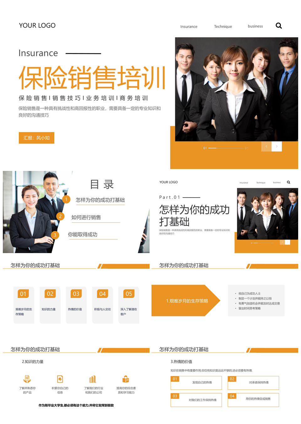 黄色实拍商务保险销售培训成功人际沟通解决方案大单技巧PPT模板
