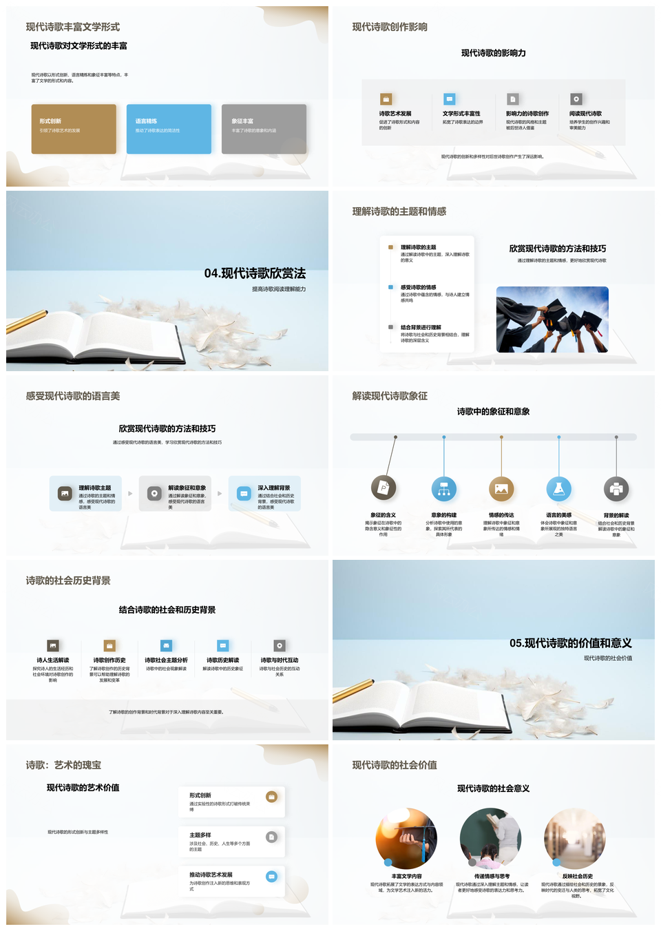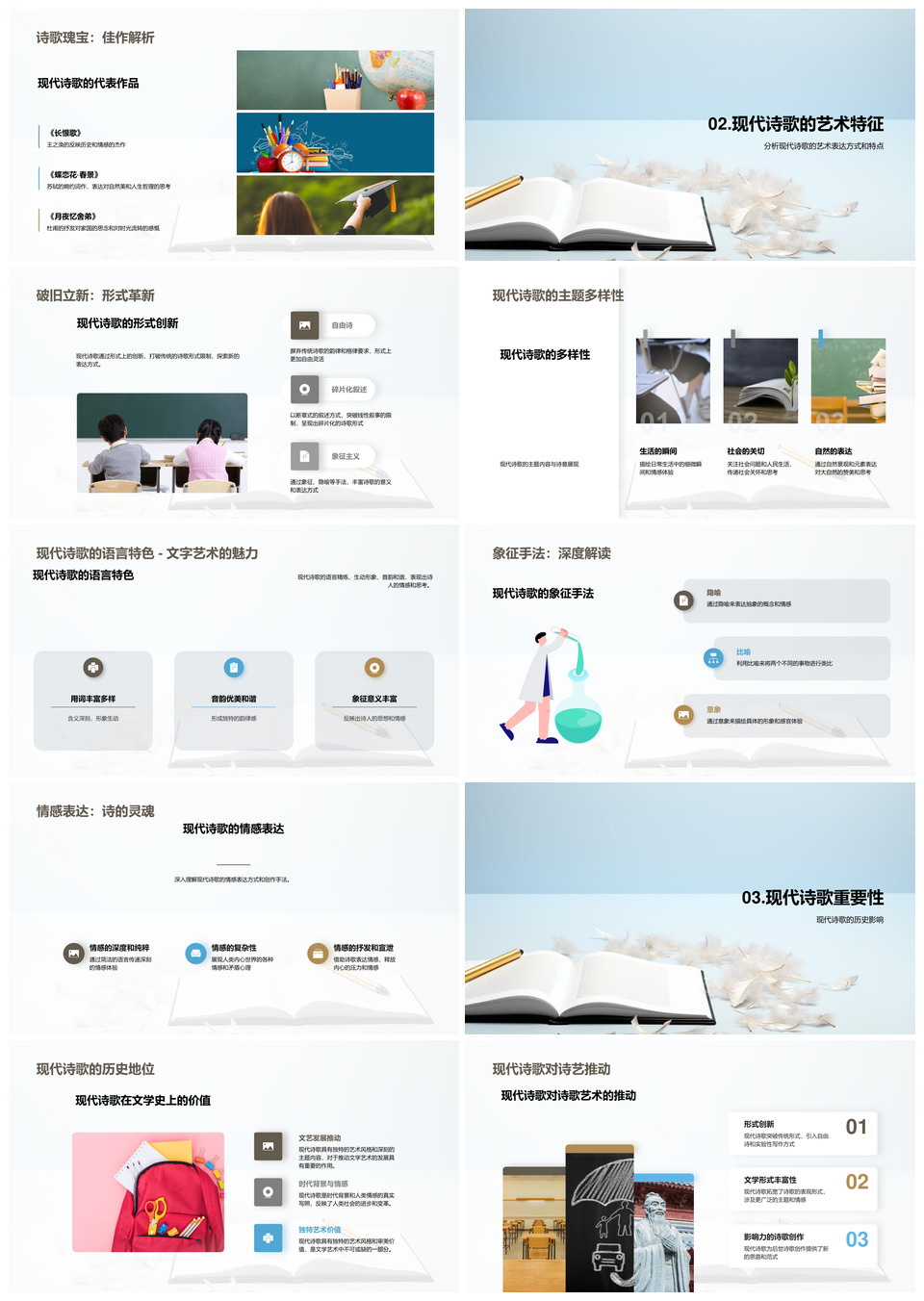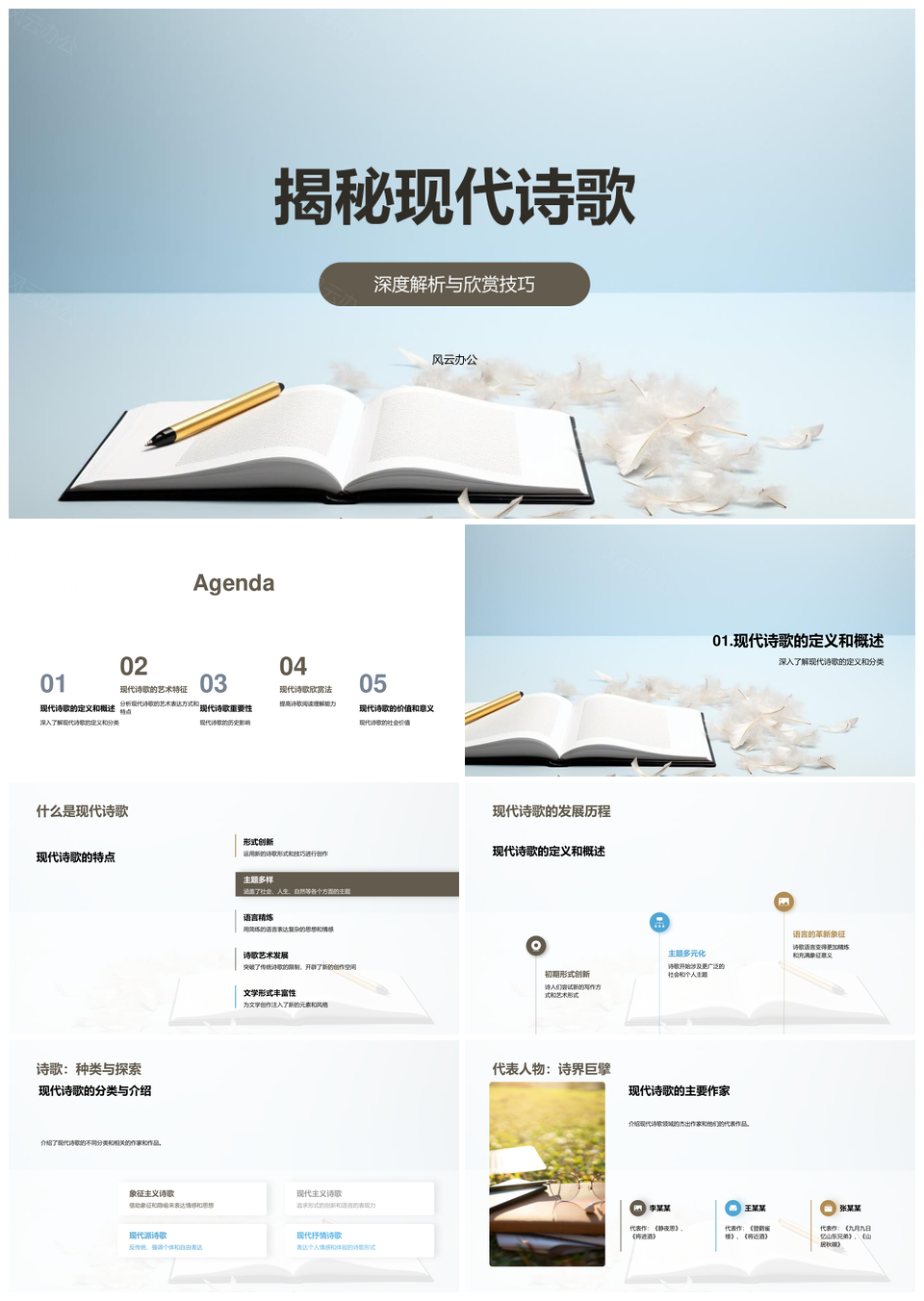 现代诗歌艺术特征形式创新代表作家作品探析PPT模板推荐