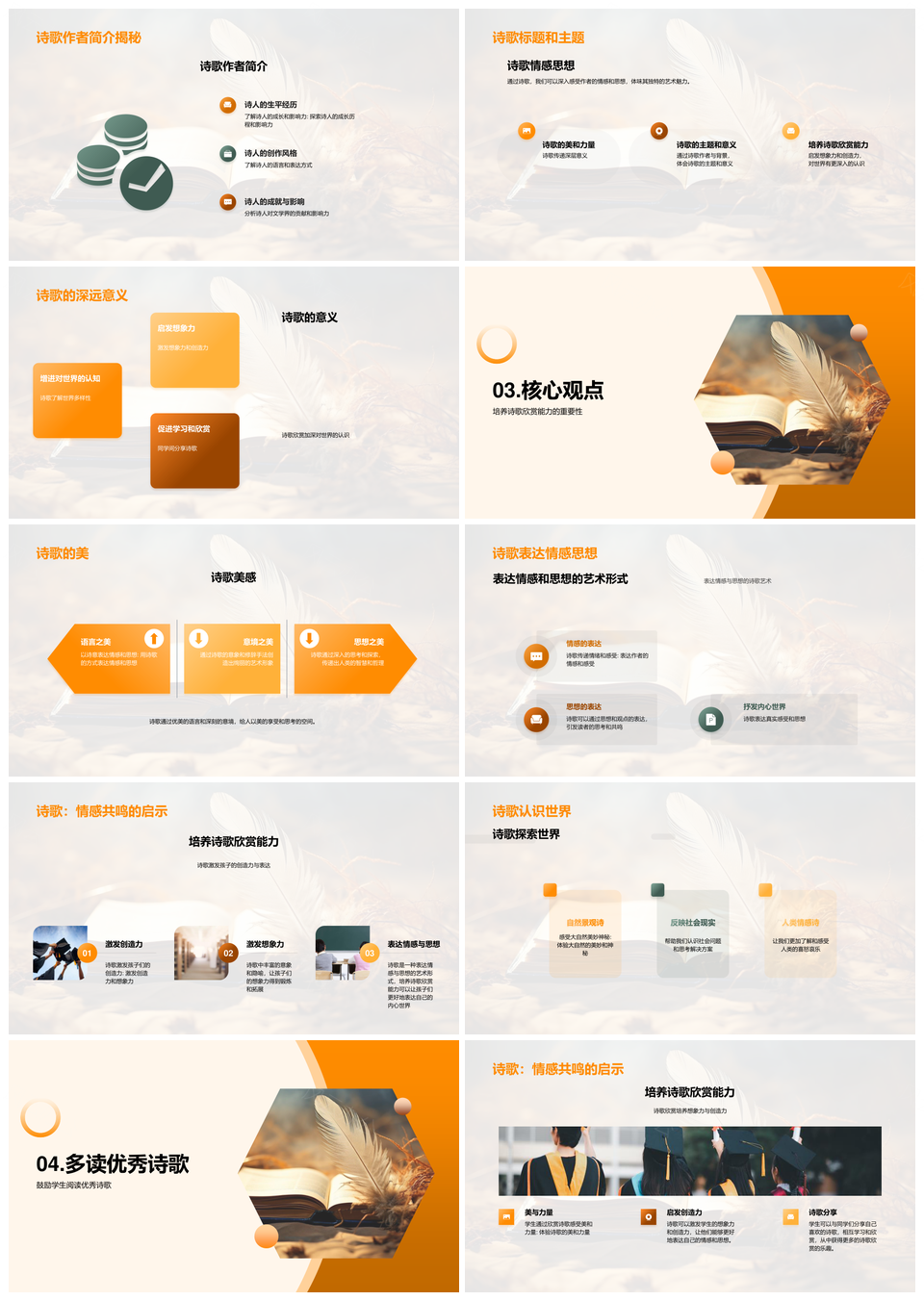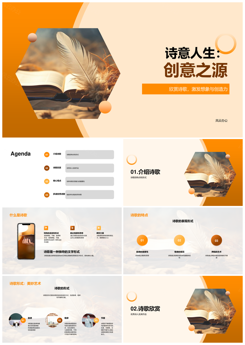 风云办公提供的诗意人生诗歌解析形式主题作者背景PPT模板,下载格式为pptx,一共20页,作品中文字及图均可以修改和编辑,图片更改请在作品中右键图片并更换,文字修改请直接点击文字进行修改。