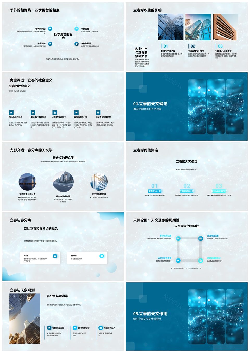 风云办公提供的立春历法天文学四季更替原理PPT模板,下载格式为pptx,一共33页,作品中文字及图均可以修改和编辑,图片更改请在作品中右键图片并更换,文字修改请直接点击文字进行修改。